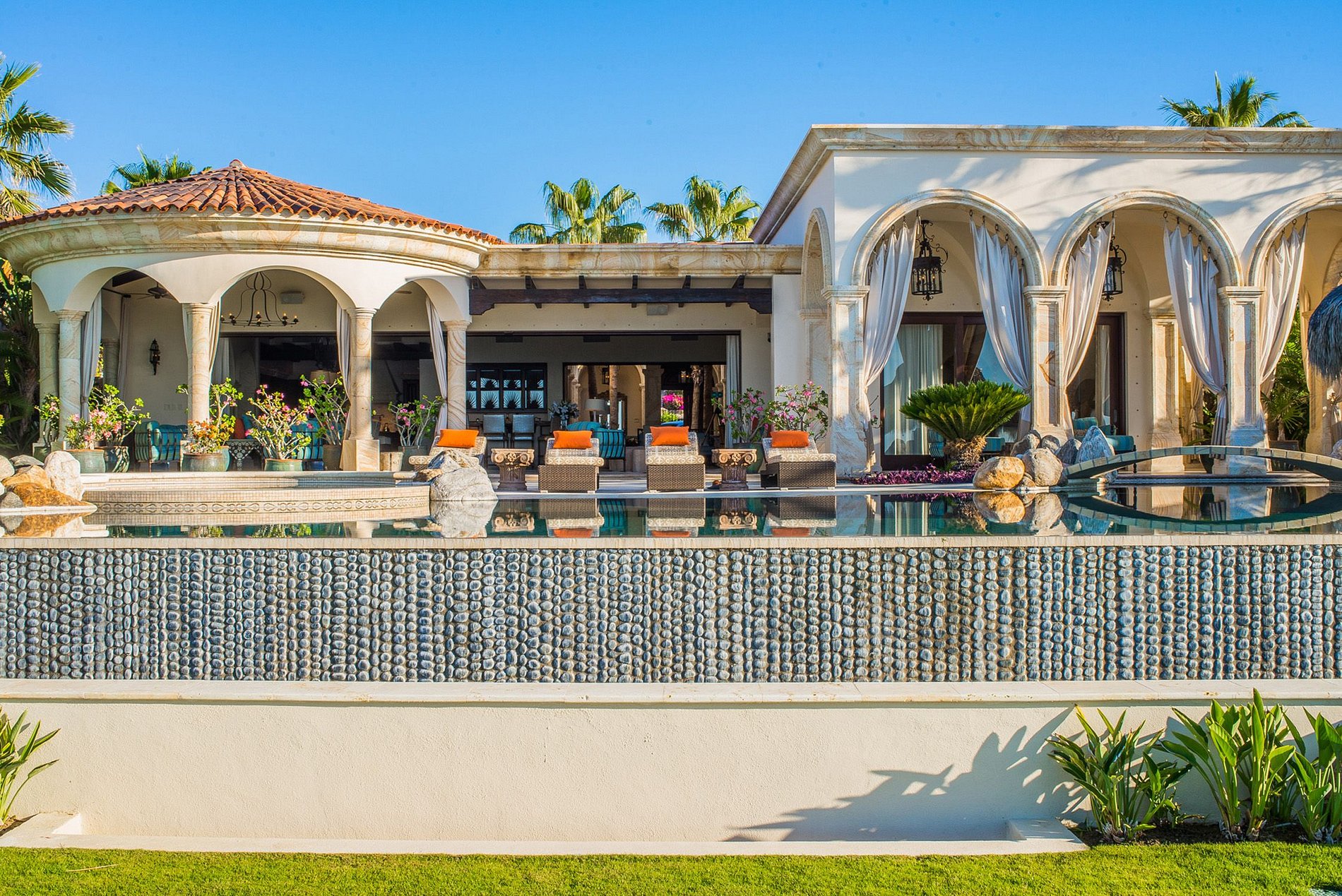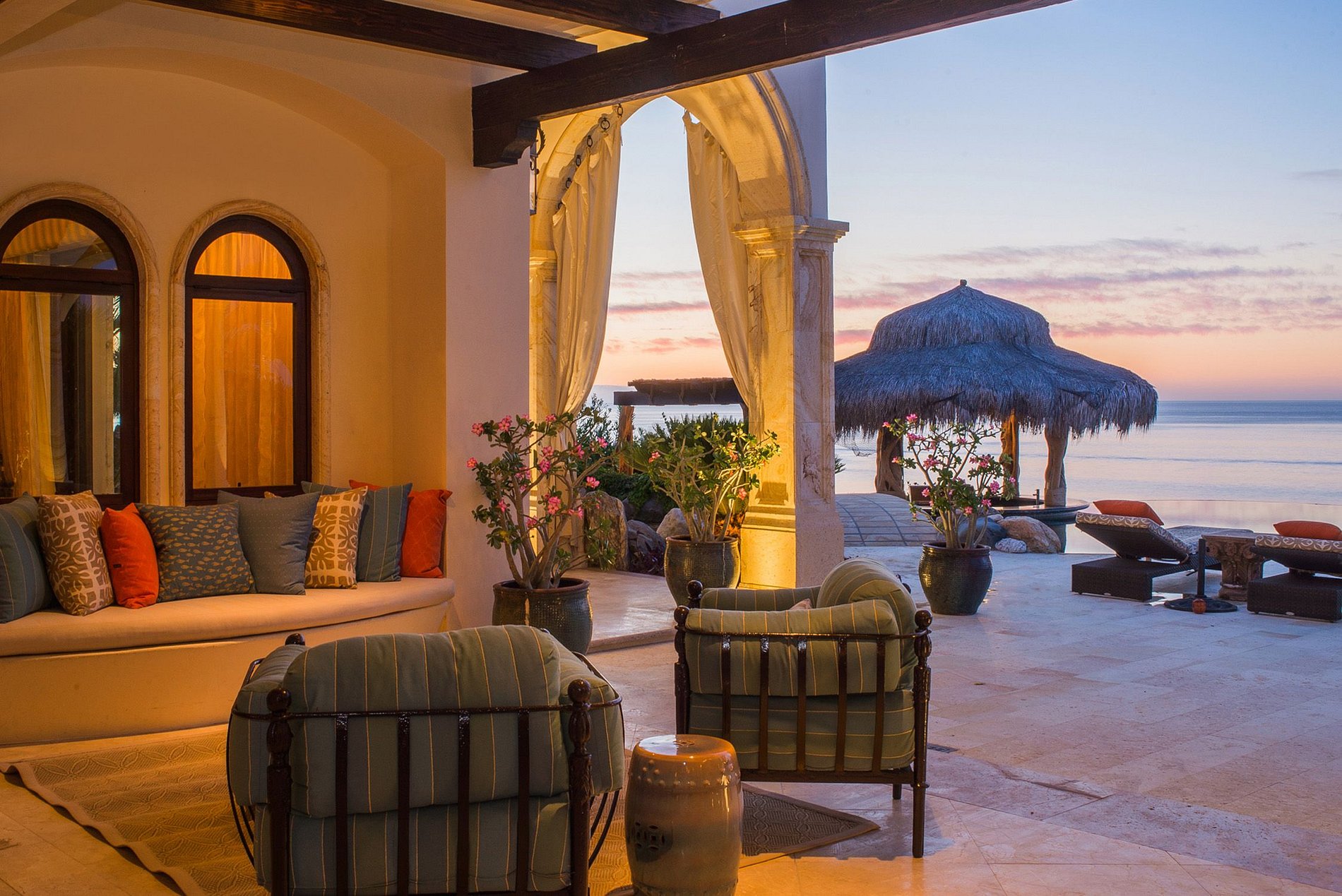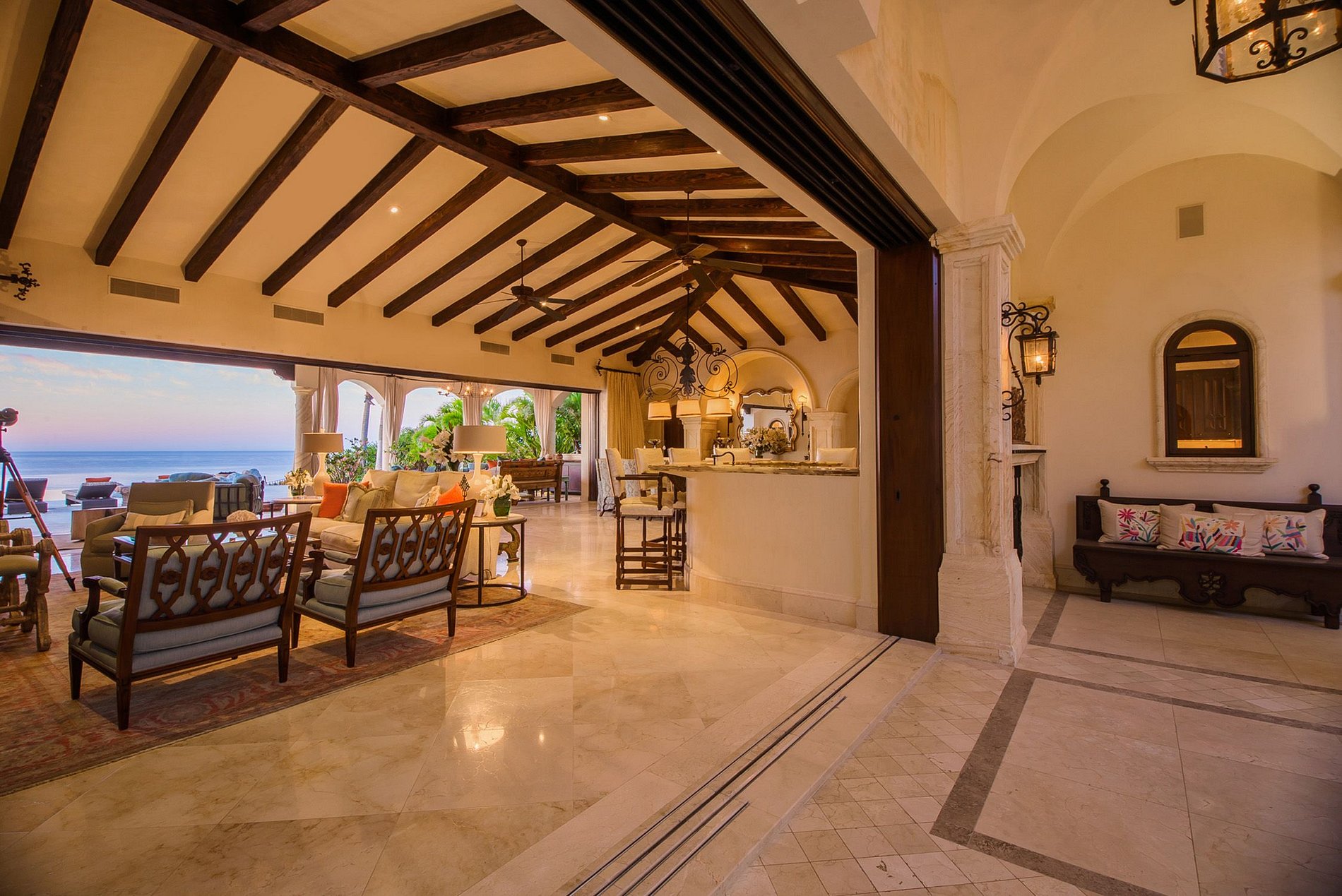 This is a stunning beachfront luxury villa in San Jose del Cabo, near Los Cabos Harbor. It is on the edge of one of the most beautiful beaches in Los Cabos. The villa boasts truly spectacular outdoor seating areas that provide stunning views of the Sea of Cortez and an exquisite classic-style farmhouse interior.