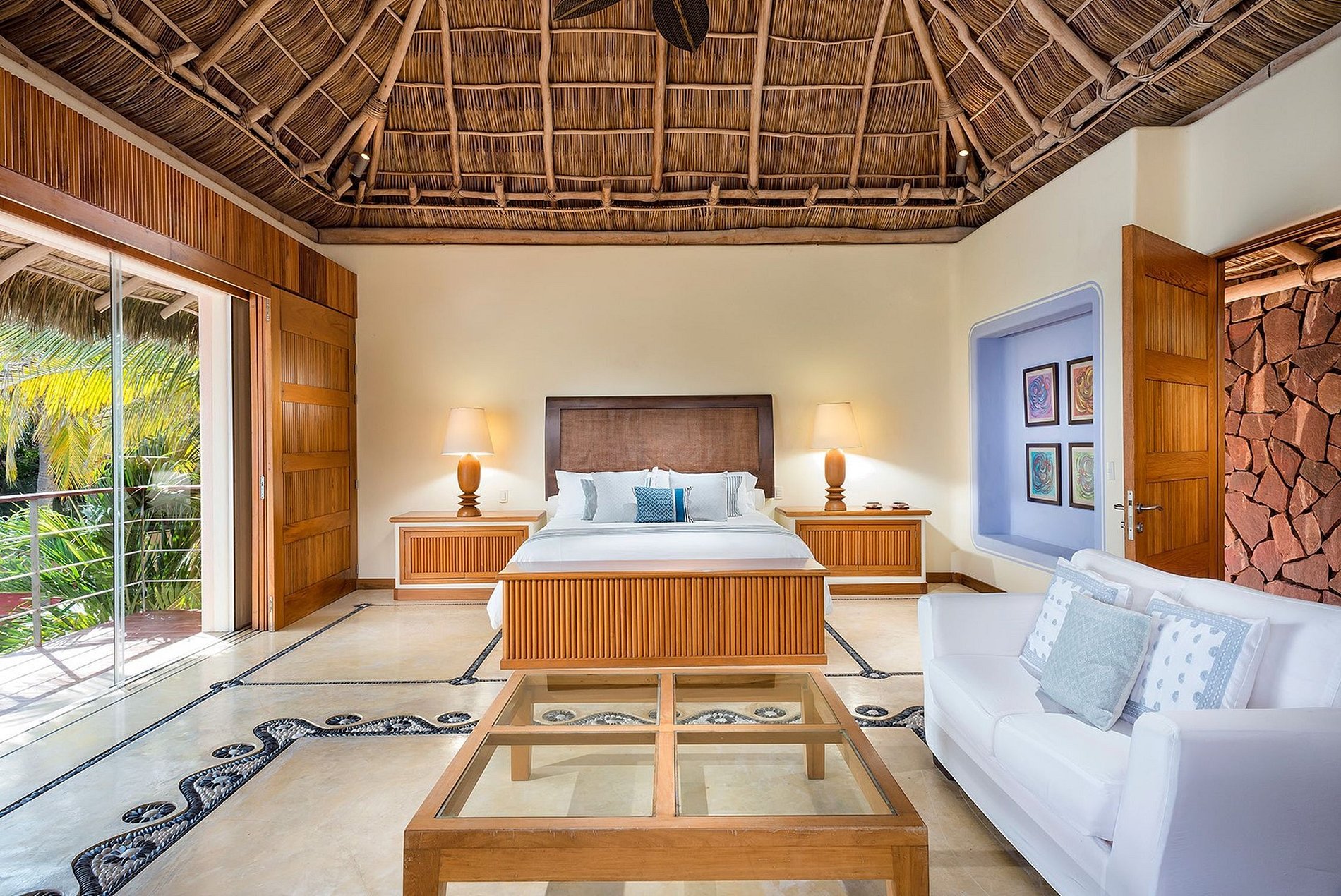 Exclusive property located in the residential "El Farallón" in Punta Mita, Riviera Nayarit. With unique wood finishes, it is perfect to host 14 people, enjoying their stay in front of the sea. Decorated with a Mexican style, the house carries with a lot of handcrafts all over the place, which are one of the most commons in Mexico and makes it more cheerful and colorful.