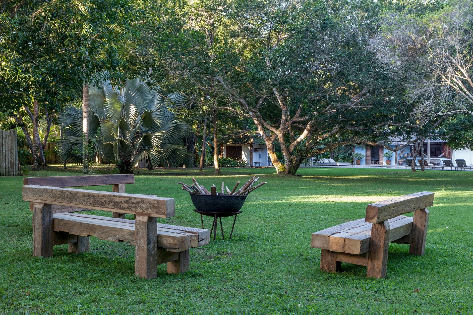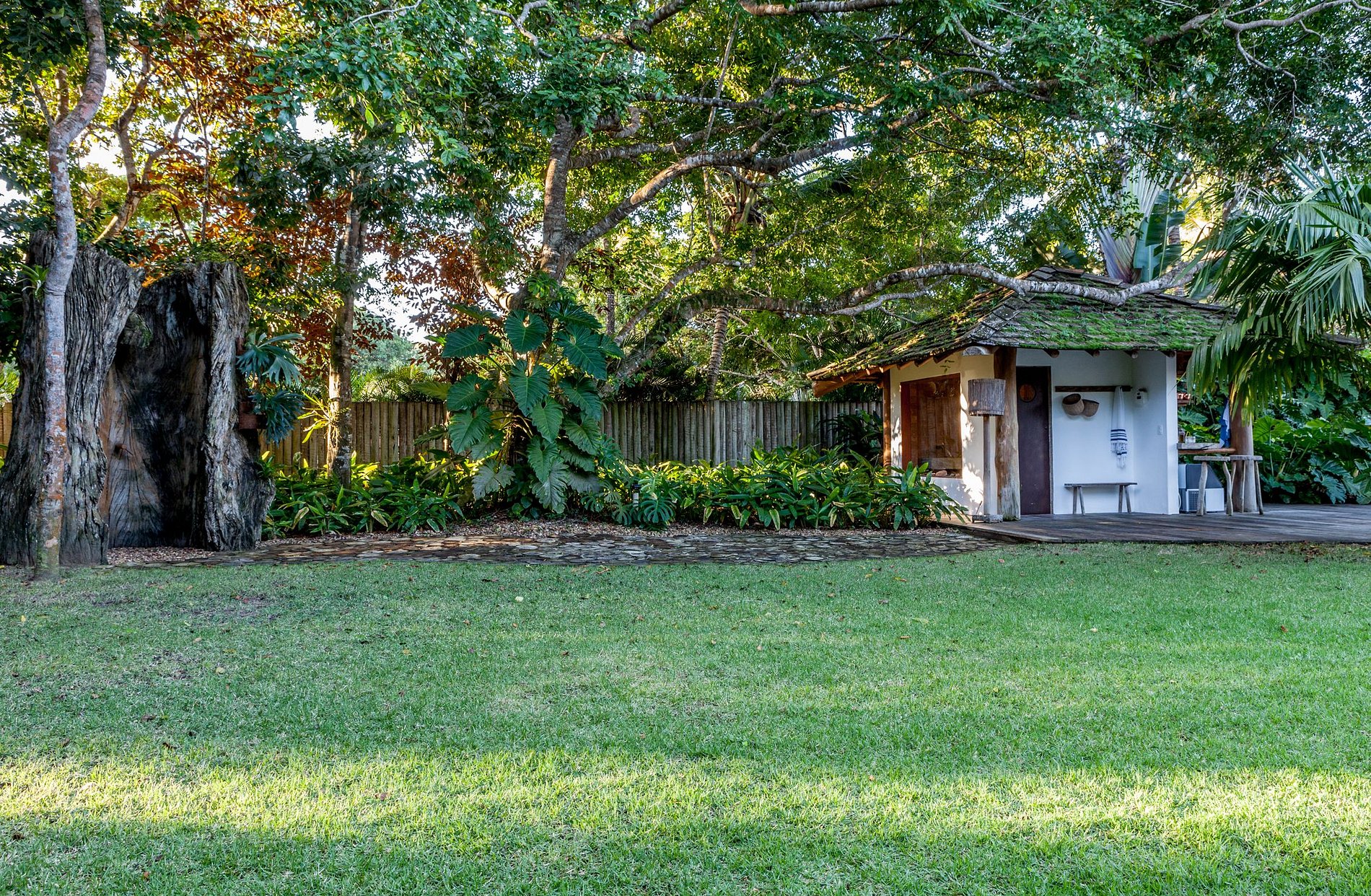 This paradisiacal property is located in the Altos de Trancoso condominium, on a plot of 5,000 square meters, surrounded by a tropical garden with a refreshing swimming pool, and also features a sauna, shower, bar/outdoor kitchen and games room.