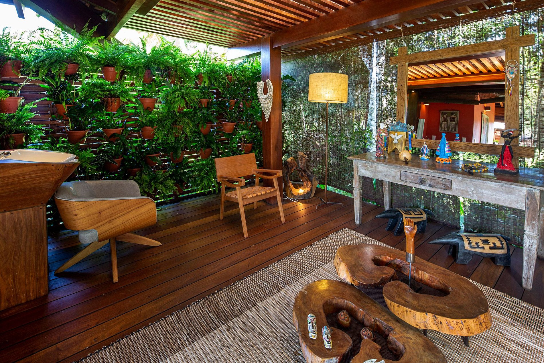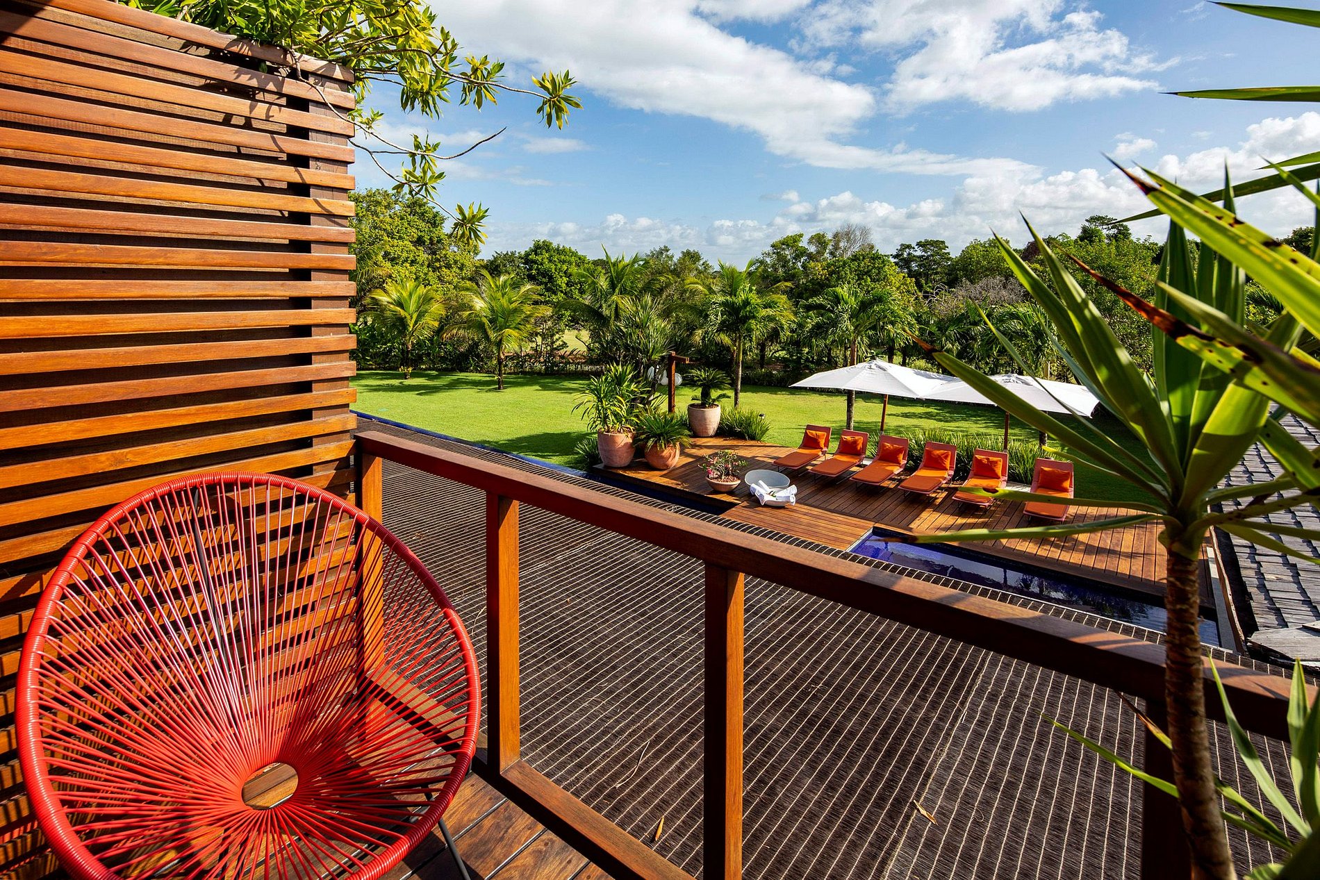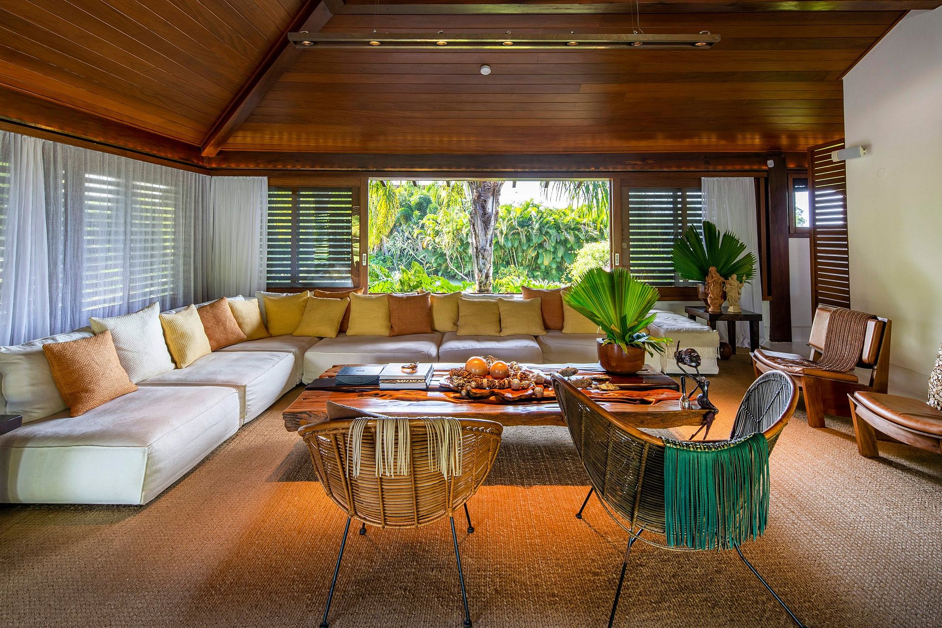The intimate and social areas are interconnected by Cumaru walkways protected by impressive glass walls. The many recreational areas and covered terraces over the pool provide the perfect setting for great times with family and friends. The gigantic pool and fantastic open whirlpool area are set on a beautiful deck, which provides an added touch of comfort and a tropical ambiance.