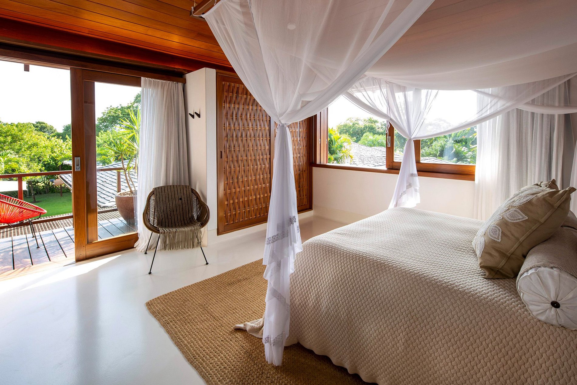 The intimate and social areas are interconnected by Cumaru walkways protected by impressive glass walls. The many recreational areas and covered terraces over the pool provide the perfect setting for great times with family and friends. The gigantic pool and fantastic open whirlpool area are set on a beautiful deck, which provides an added touch of comfort and a tropical ambiance.
