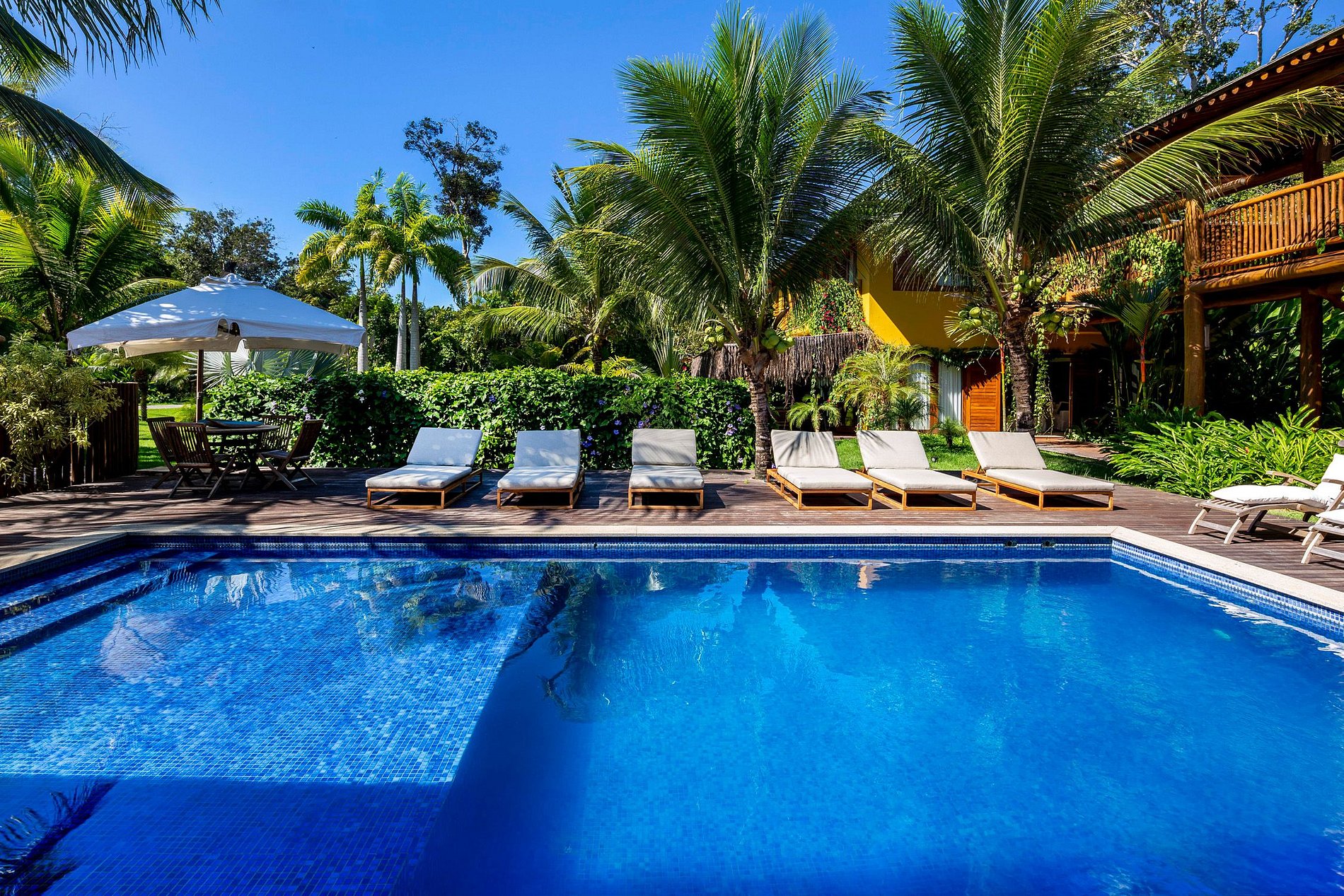 Master Suite: King bed, air conditioning, TV area, two showers and whirlpool bath, garden and pool view;