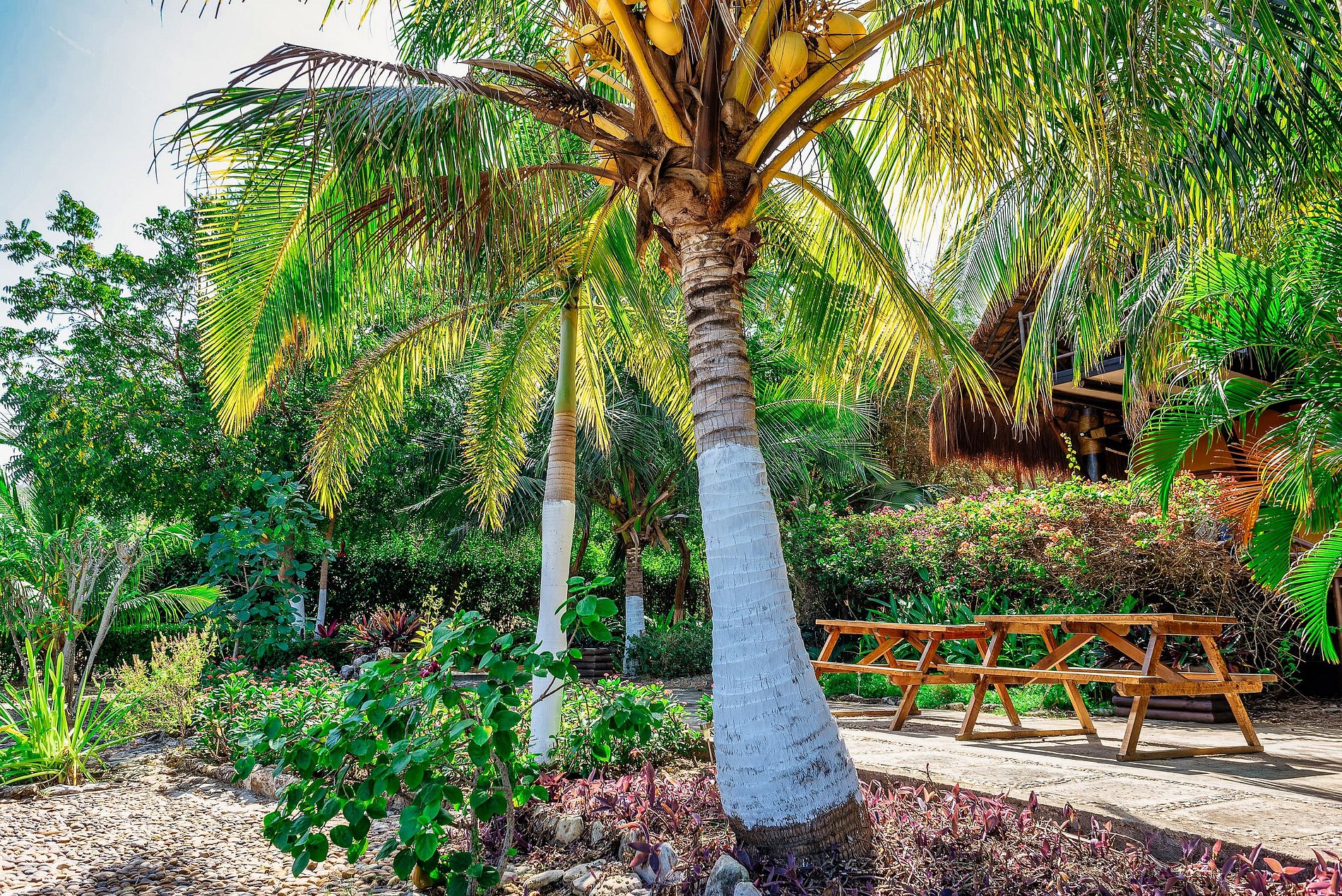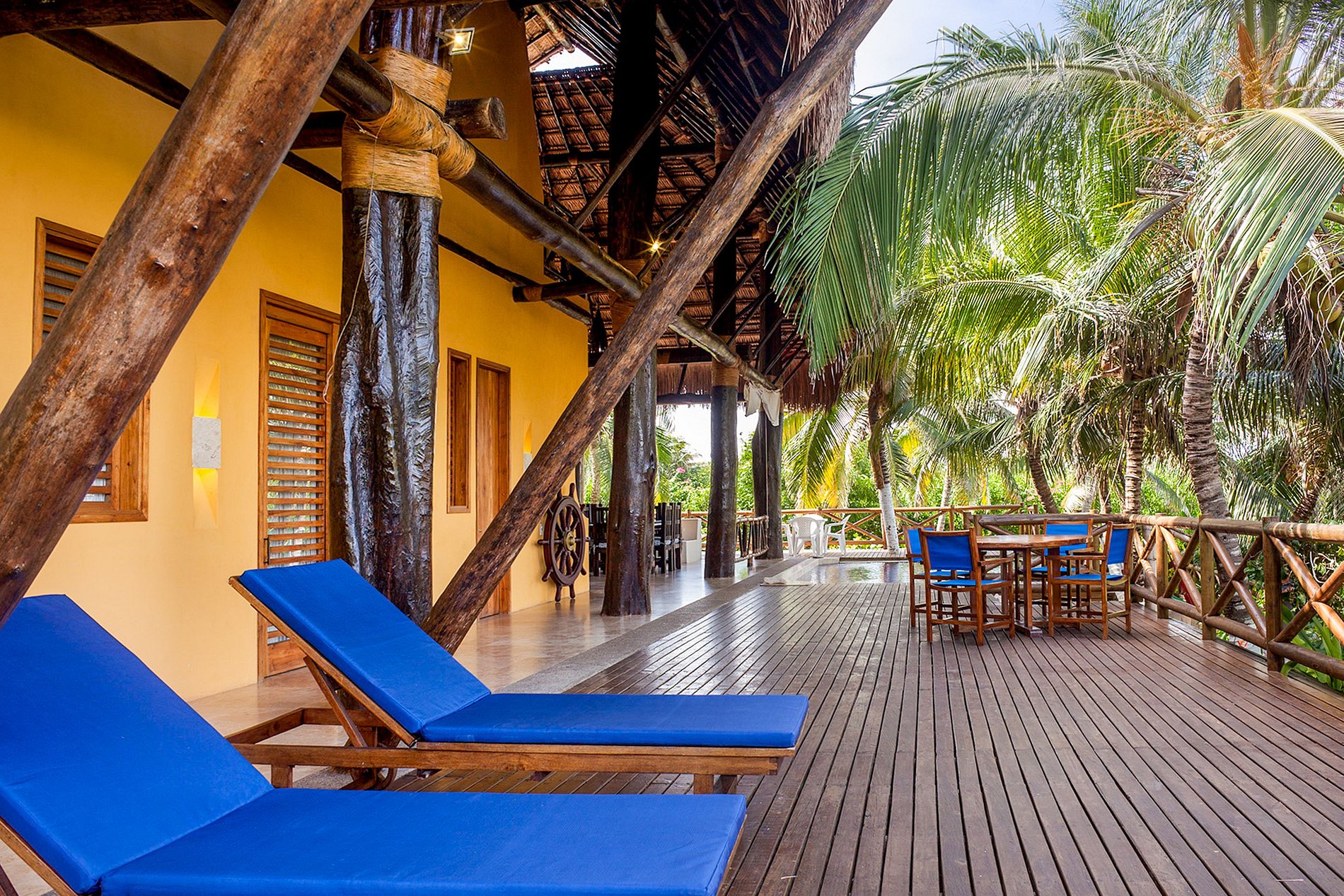 The main house has 3 bedrooms that come with air conditioning and ensuite bathrooms, as well as a mezzanine with a double bed, fans and an ensuite bathroom. For groups needing extra space, there is an independent apartment 50 meters away from the main house, which comes with 2 double beds.