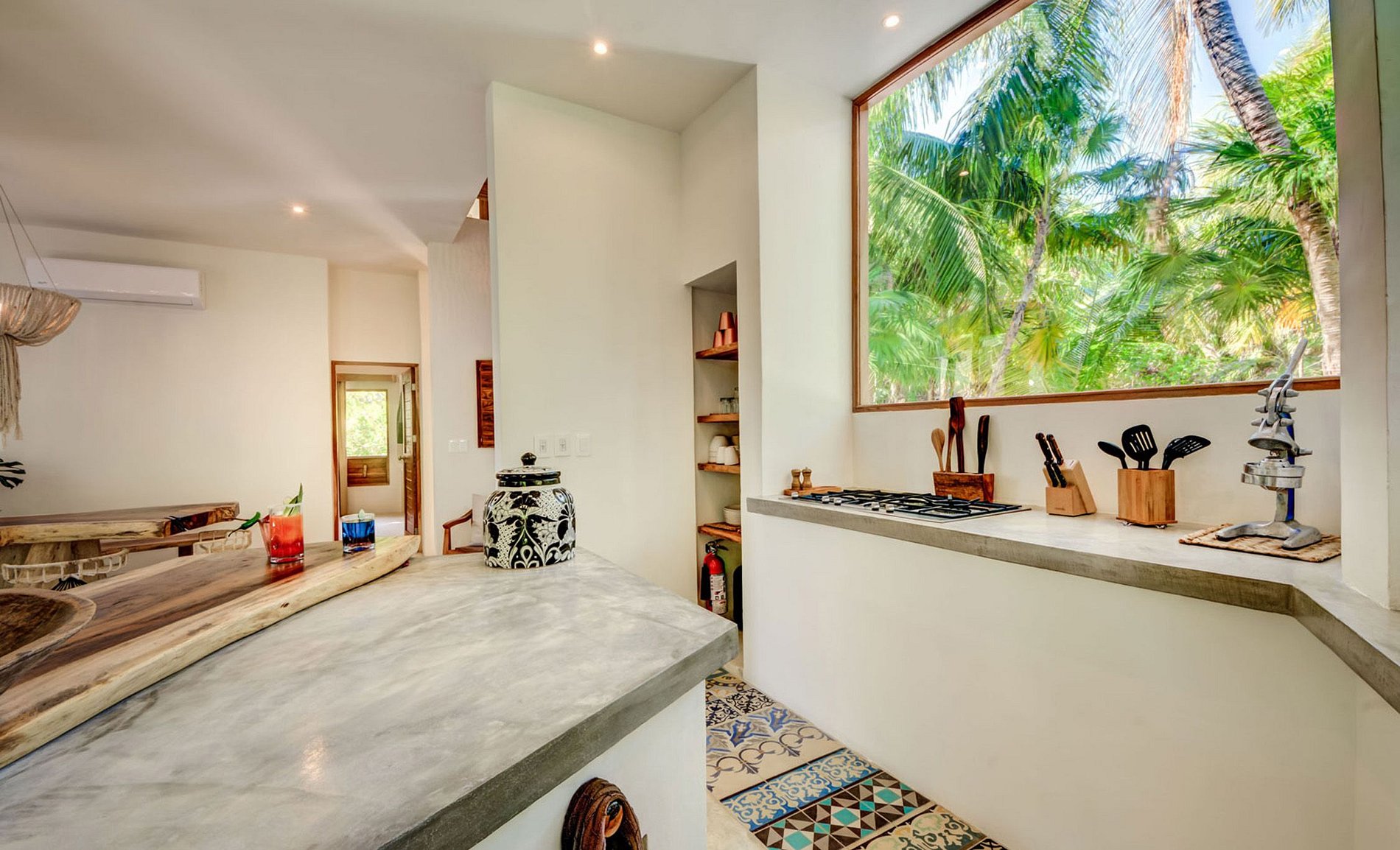The house presents an eclectic style using traditional techniques, warm woods and natural textures. Every piece of furniture, textiles, arts and crafts, using organic and natural materials, were made by artisans from all over the Yucatan’s Peninsula and specifically selected for this outstanding house in Tulum.
