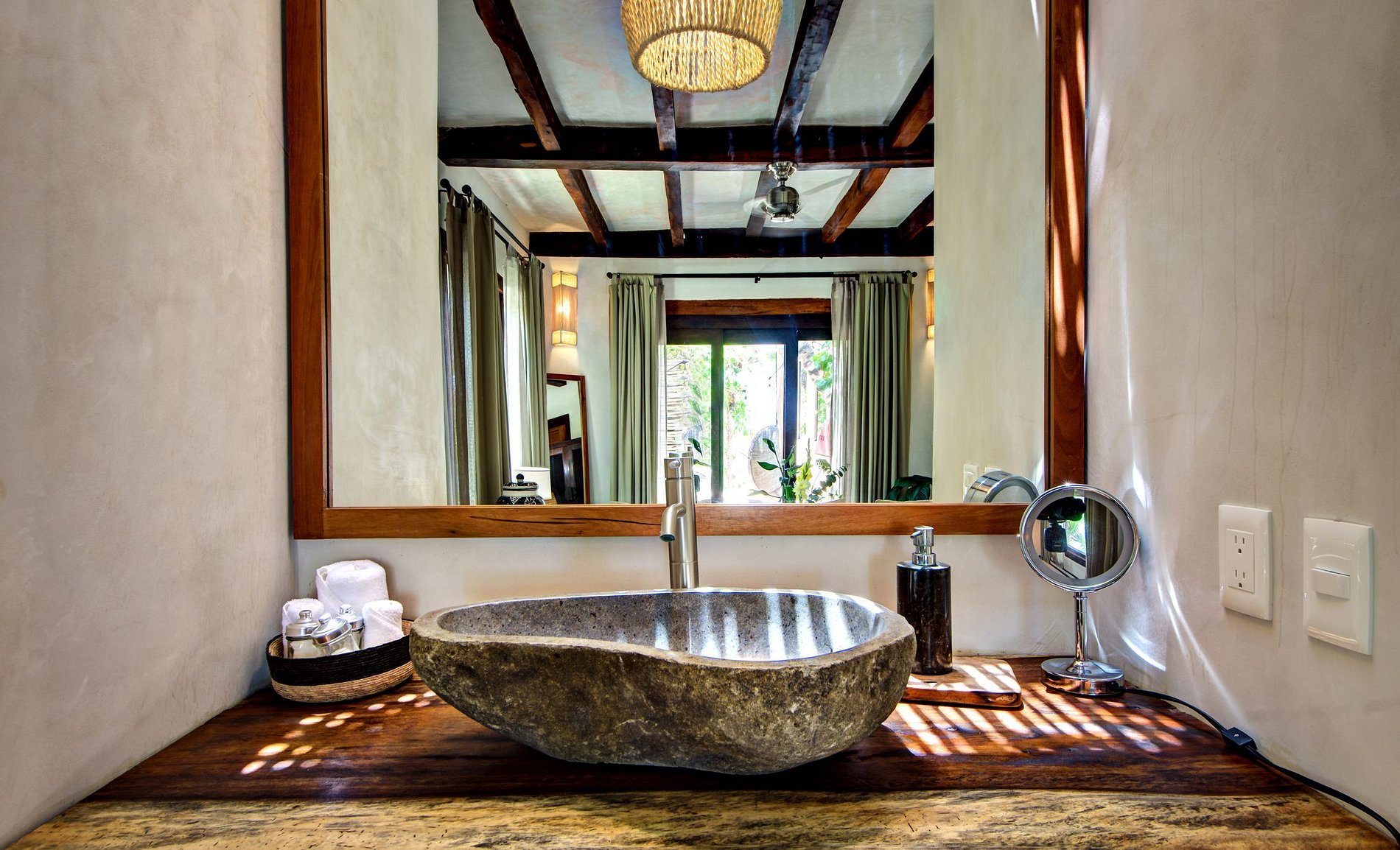 A unique ocean front house in the heart of Tulum beach. This exclusive villa has stunning ocean views and the perfect mix of Mexican construction with warm wood details and traditional building techniques. The house provides privacy, comfort and an unmatched sense of space and tranquility.