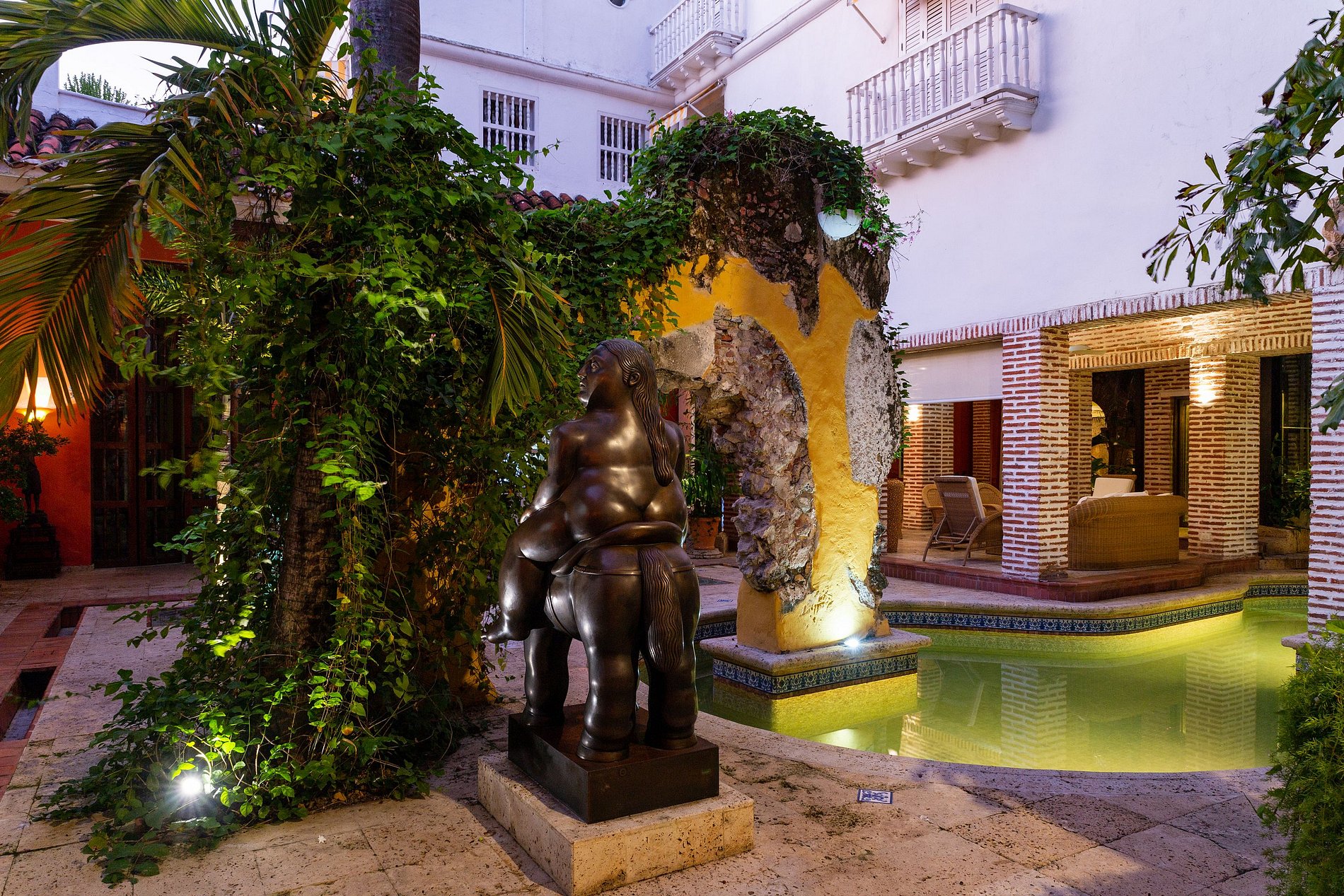 Delve into the majestic times of colonial Cartagena in this unique mansion located in the heart of the Old City. After only a few steps into the large patio of the villa, you find an impressive Botero statue standing in front of the pool.