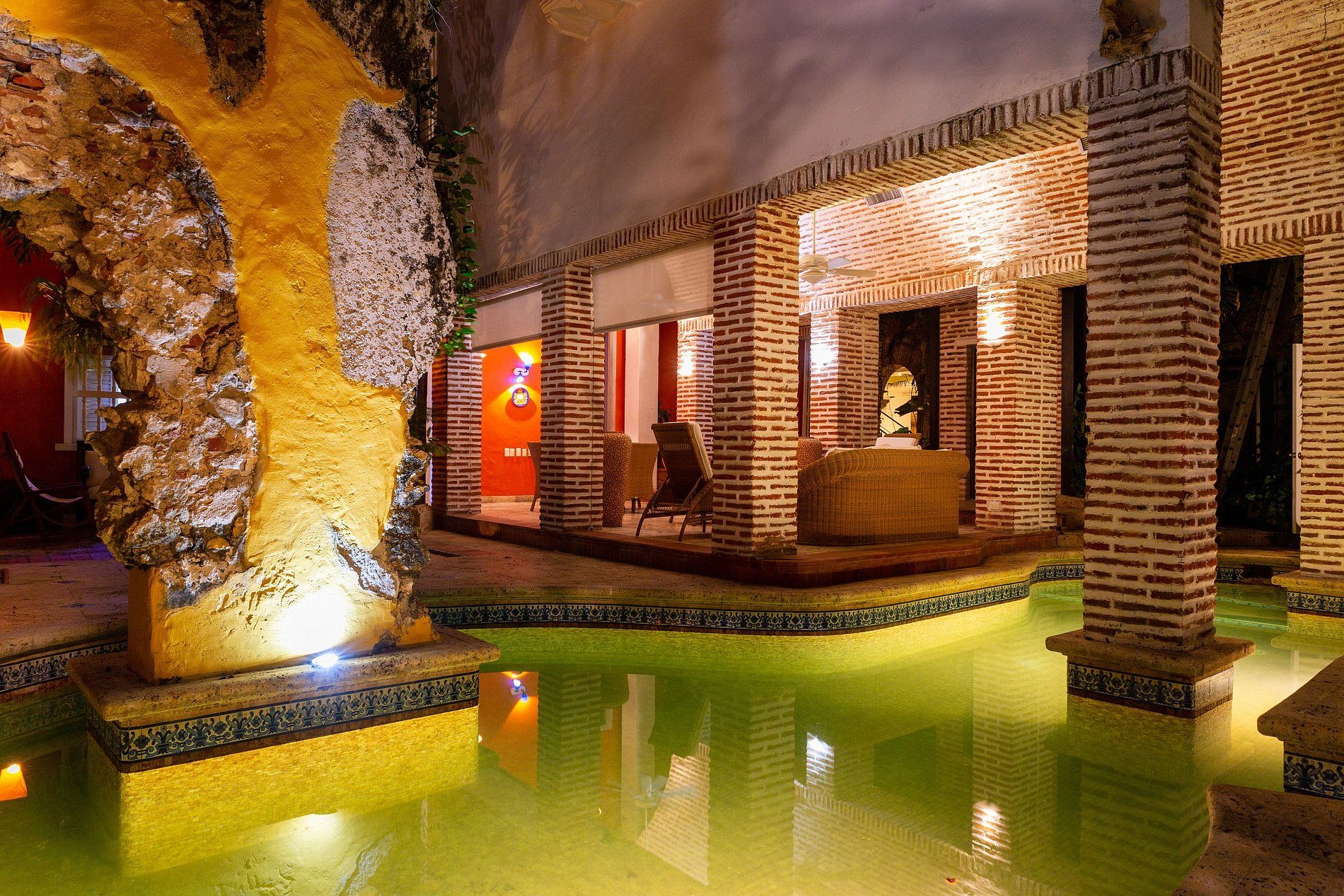 This mansion is perfect for families and friends looking to experience the real Cartagena, with all the modern comfort and amenities. It has 7 bedrooms, a pool on the patio, and a jacuzzi on the rooftop, a gym, a stunning living room, a large dining room, and an elevator. he living room will bring you back to colonial times through its many ancient pieces of art.