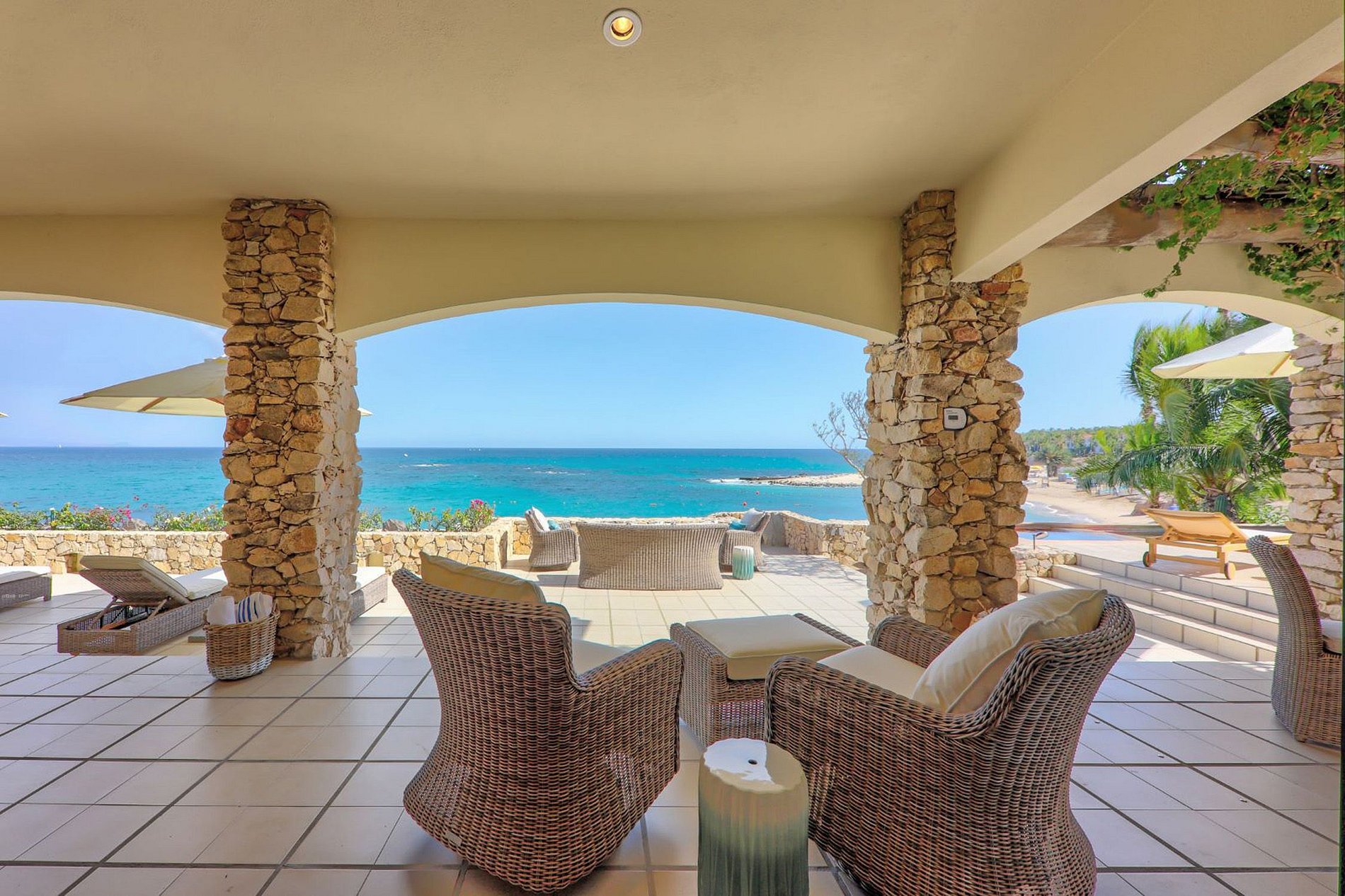 The impressive master suite features a king size bed, living room with fireplace and private bathroom. Beachfront balconies extend from bedroom to bathroom, offering easy access to the soft sands and warm sea. Three of the suites are essentially junior master suites: each has a king size bed, sea view, a terrace or balcony and a luxury private bathroom. The fifth bedroom has a king size bed and access to a hall bath.