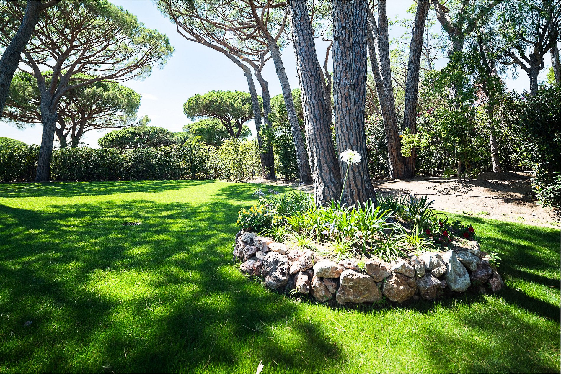 • Landscaped Mediterranean garden with rare species, under the shade of 25 Majestic Double Umbrella Pines.