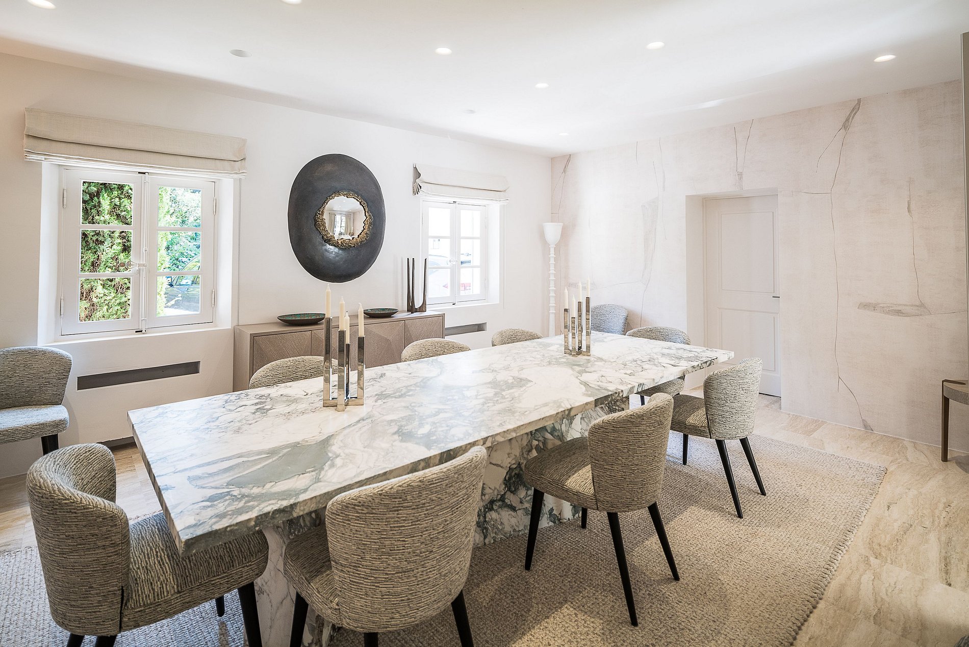 - 1 Dining Room (28m2), dining table for 12 guests. A large window with a garden view.