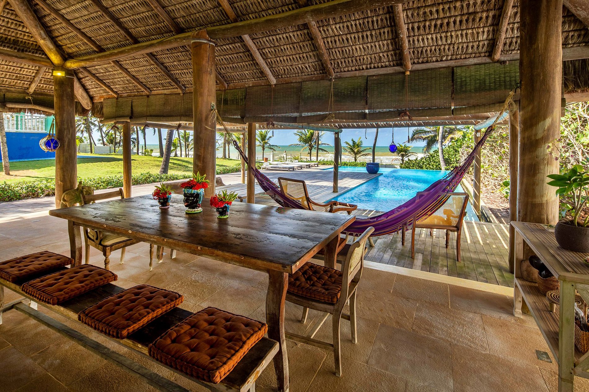 The outside social area with a right foot and a beautiful piassava cover, is the central place of the house, where enjoy the view, the beautiful garden enjoying a gentle sea breeze.