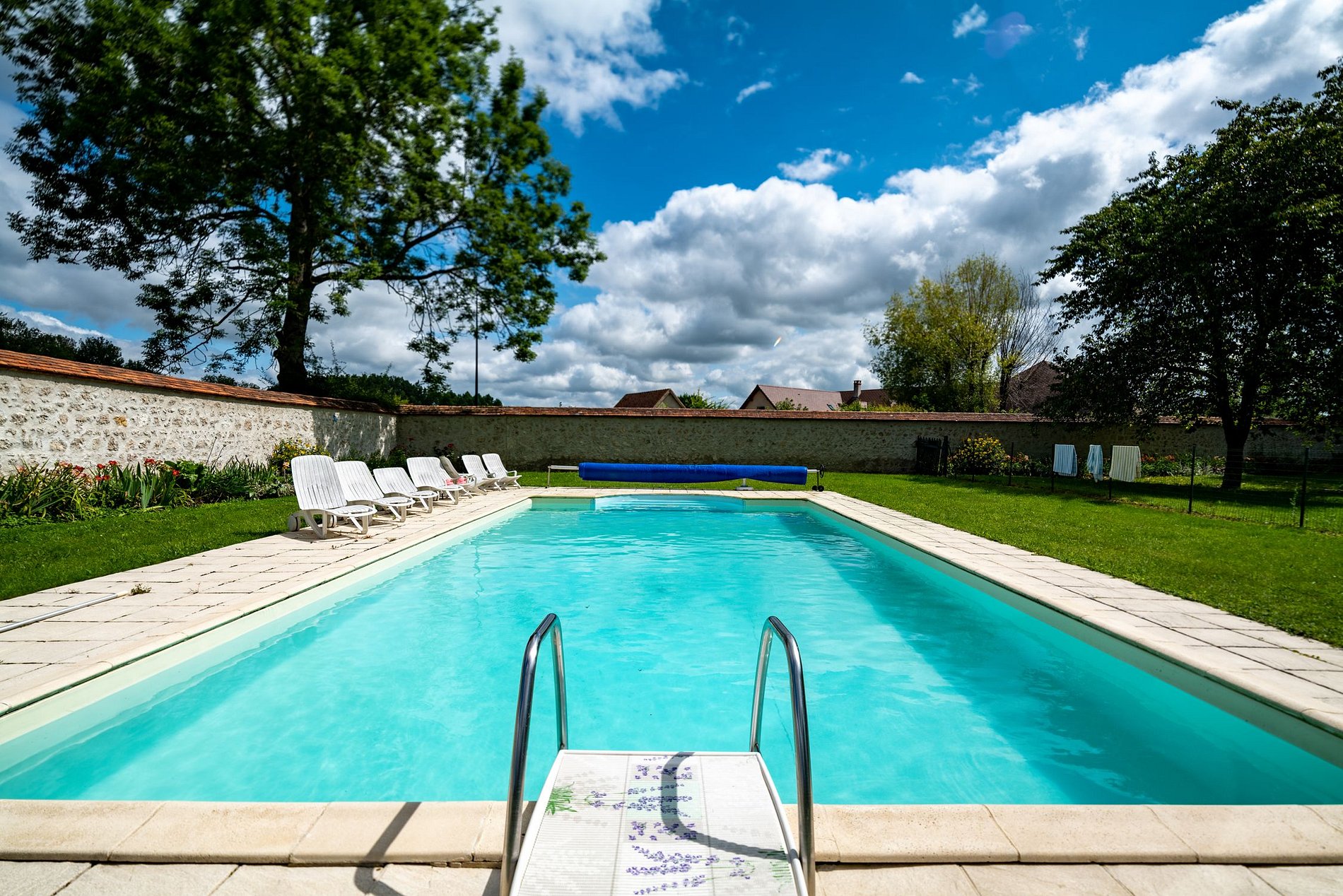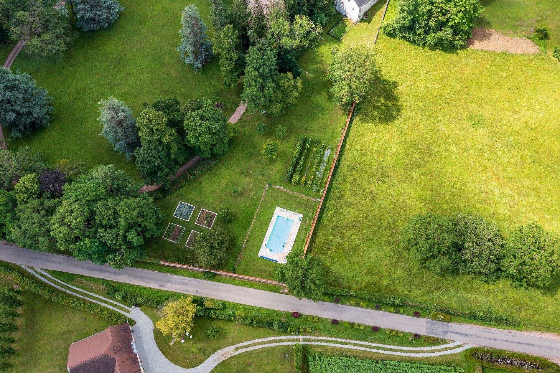 The 3-hectare park includes a vegetable garden, a swimming pool, and a large space for playing, walking, or having a picnic with the family.