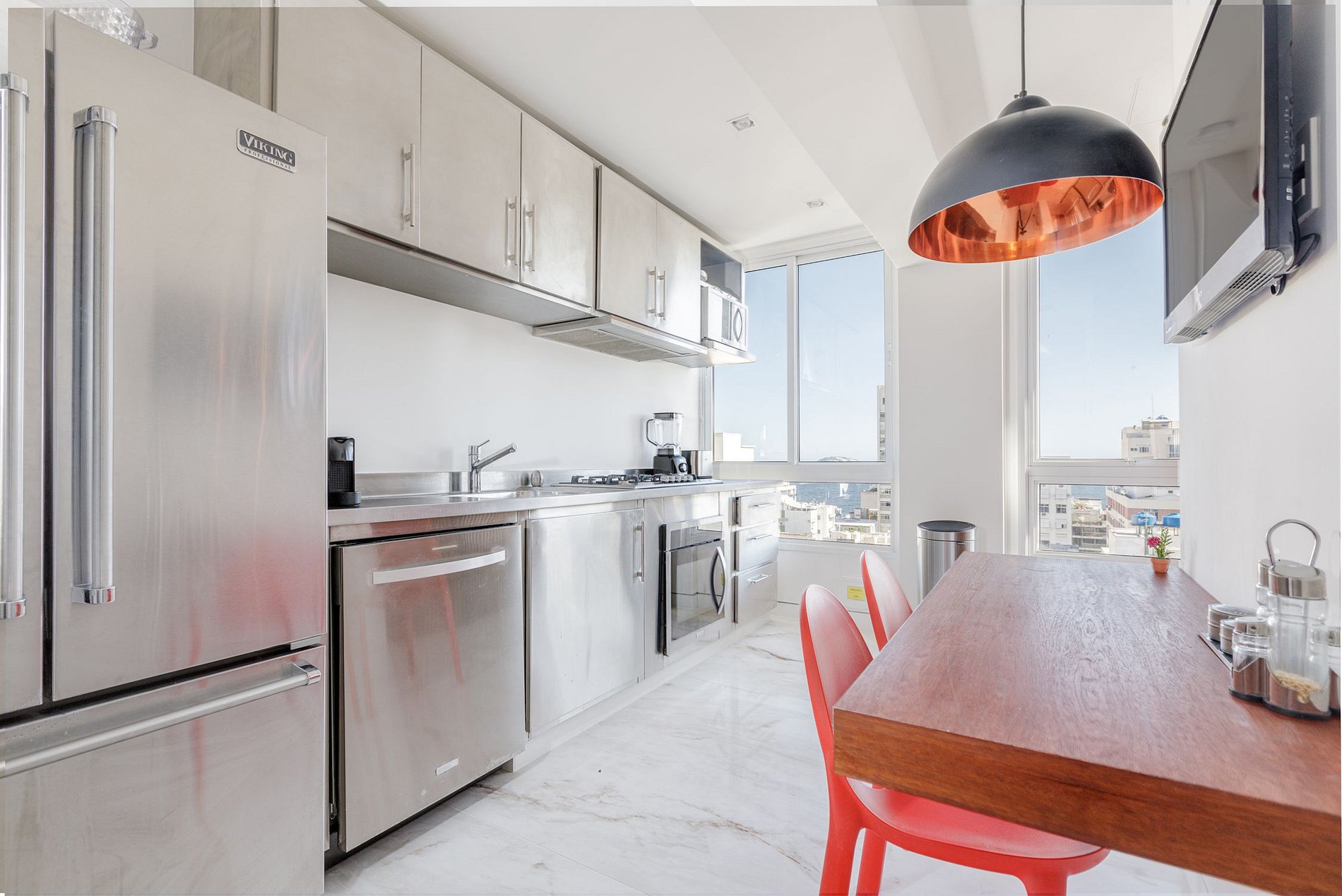 The upper floor is where you can find the master suite (with Jacuzzi) and the terrace area with a great pool area. This apartment is an excellent option for those who wanna visit Rio with comfort and amazing views.