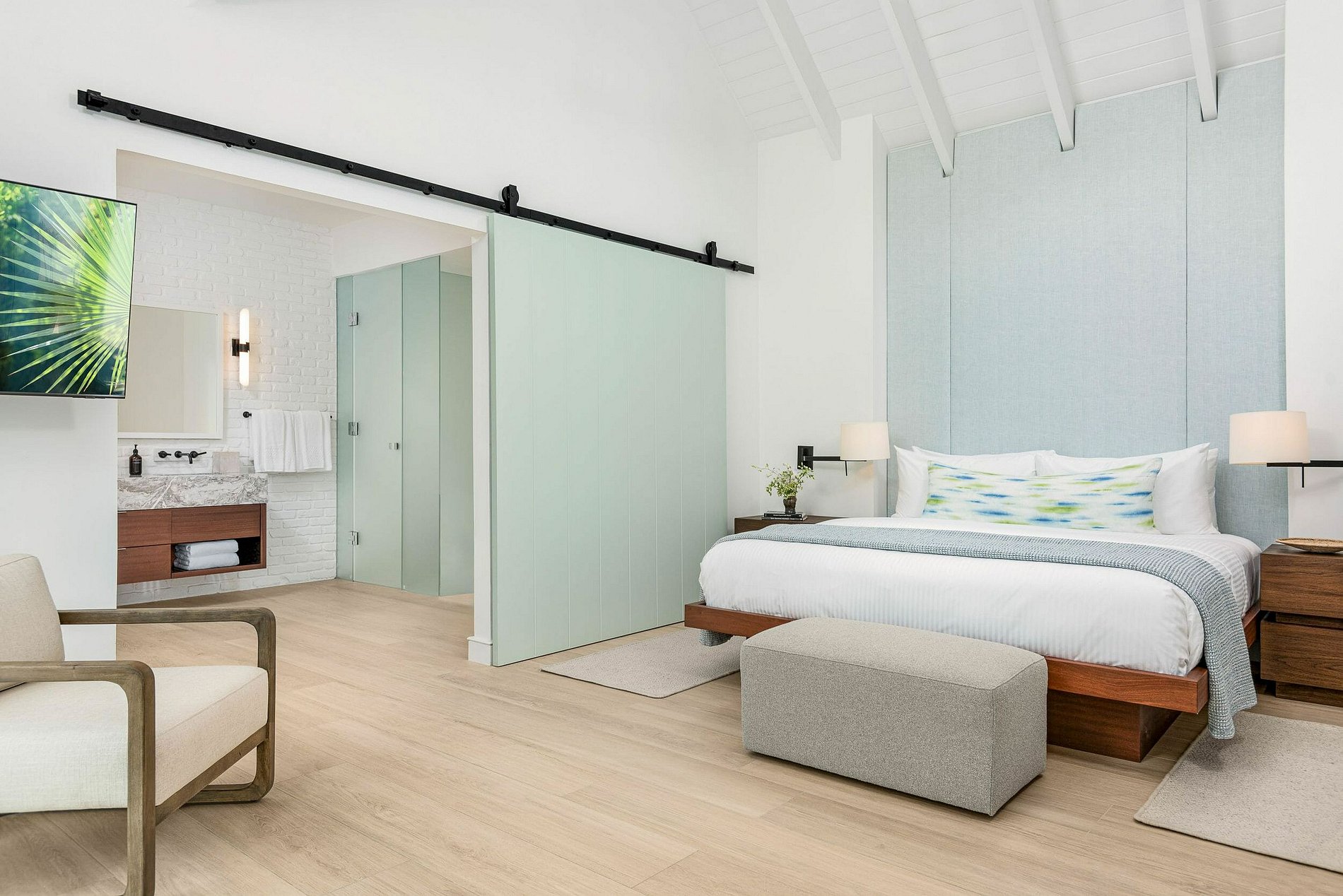 For larger groups or additional guests, a separate pool house offers two bedrooms, each equipped with two king-size beds and a private bathroom