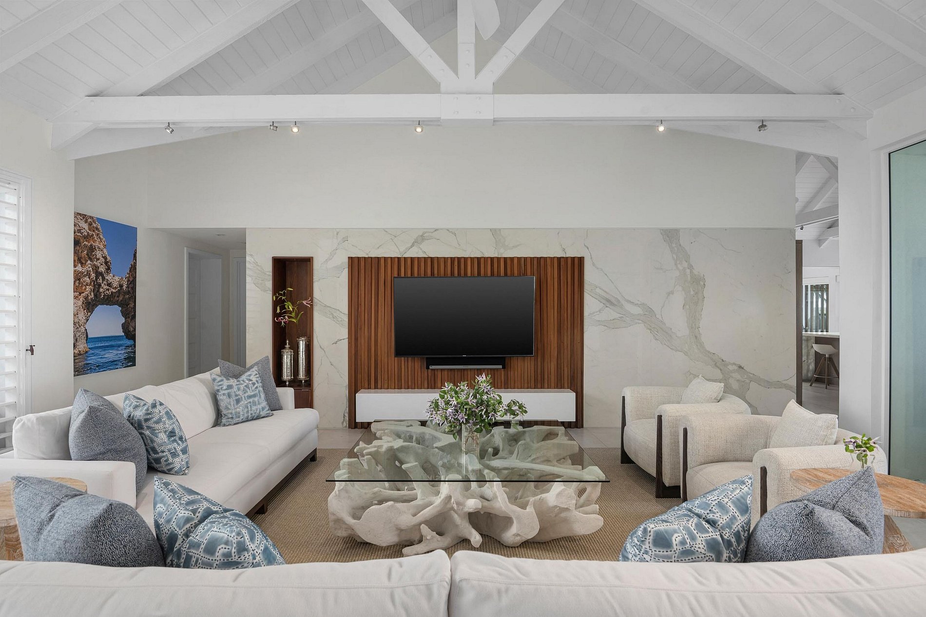Whether you’re gathering around the outdoor dining table, enjoying the poolside bar at sunset, or unwinding in the media and games room, every corner of the villa is made for effortless living. The outdoor areas include a heated pool, fire pit, pizza oven, and several lounge spaces surrounded by tropical gardens, creating a peaceful and private setting just steps from the beach.