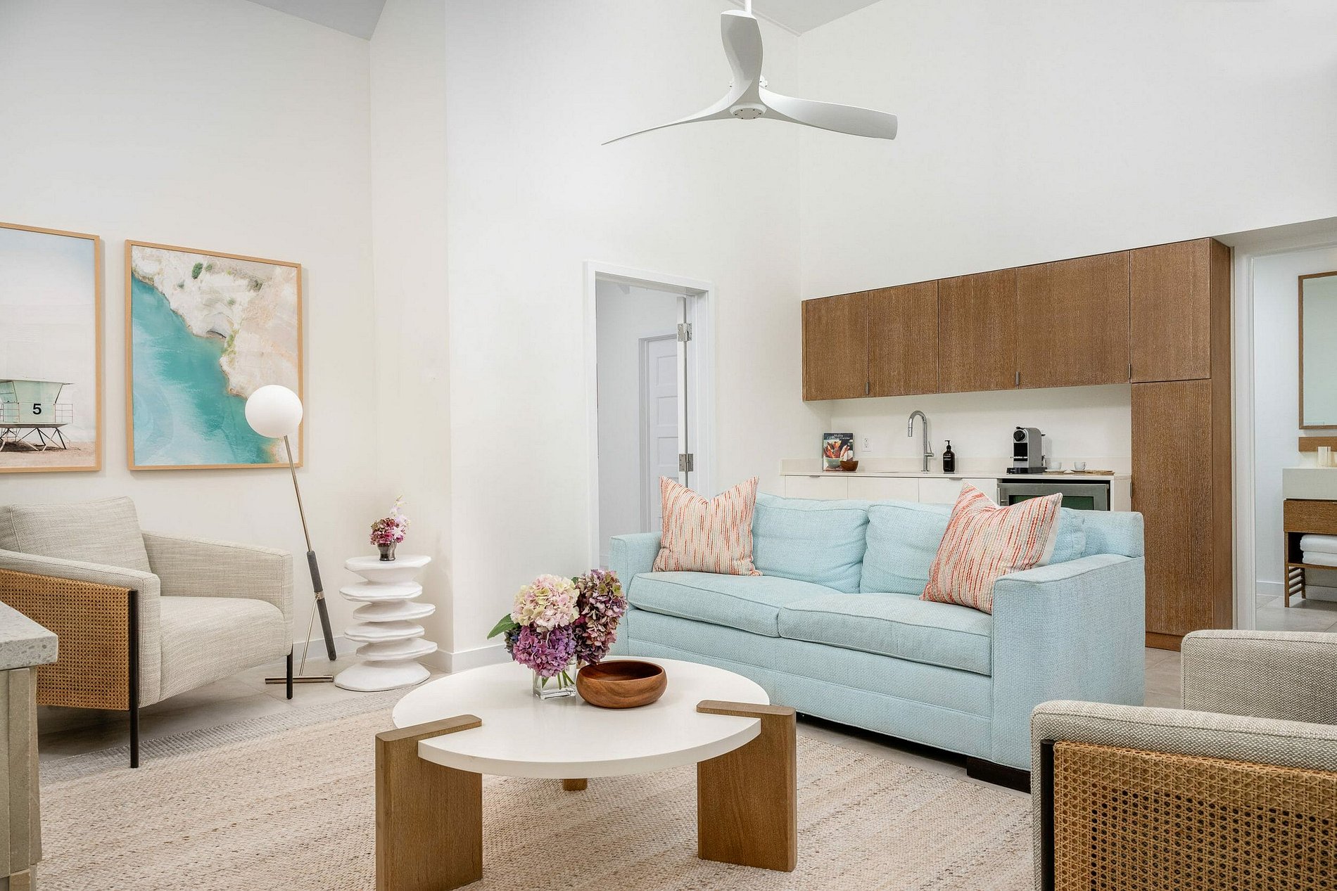 For larger groups or additional guests, a separate pool house offers two bedrooms, each equipped with two king-size beds and a private bathroom