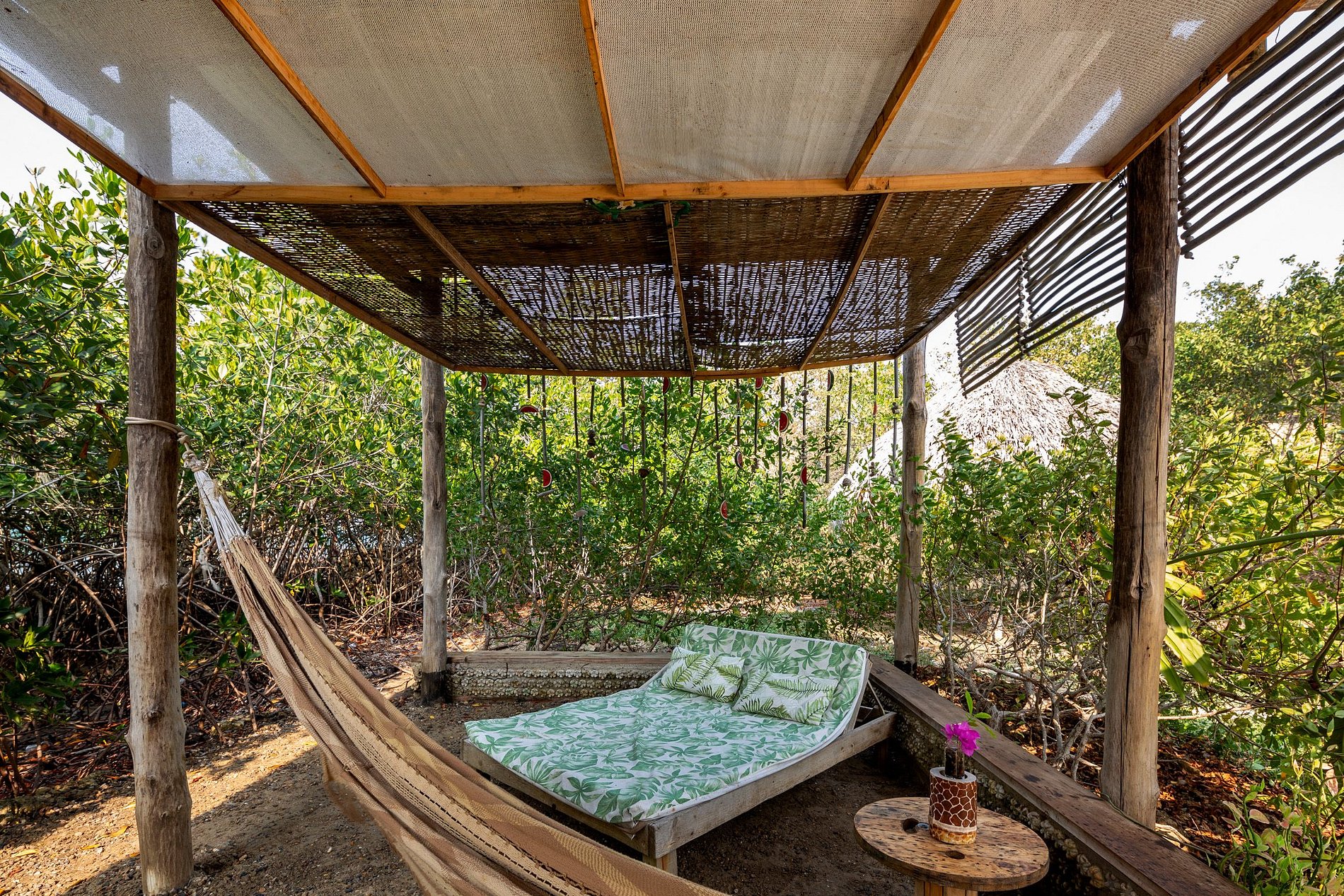 There are also kiosks with hammocks or reclining chairs to sit and enjoy the view. It has 4 bedrooms with awning, ventilation, and toilet, for the well being of its guests.