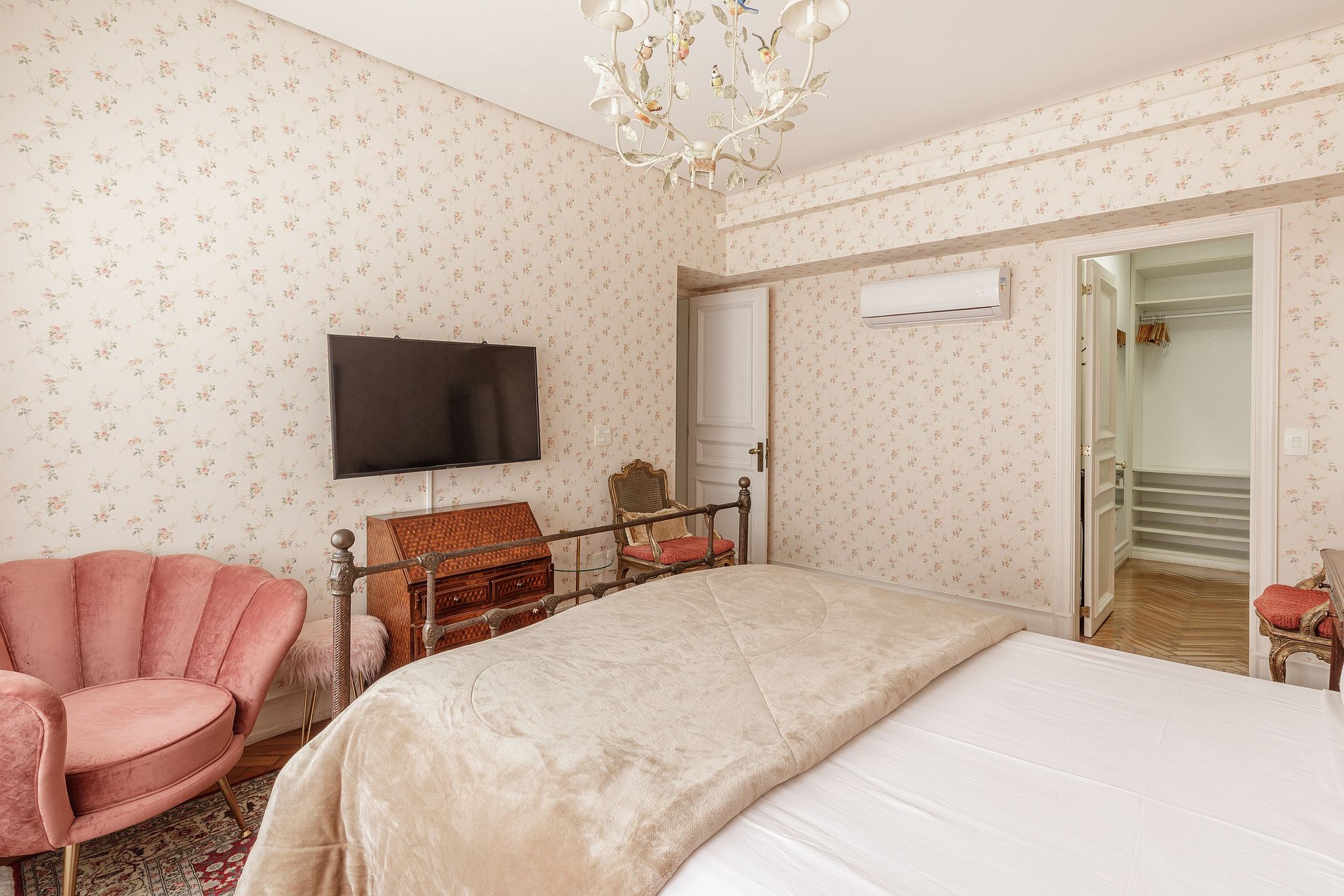 The apartment has five suites, three suites with dressing room and a double bed, and one suite with two single beds. Three suites are located on the first floor and have a TV room between them. The master suite is on the upper floor, and has an area of 120 m², a TV room and an office. The bathroom of the main suite has bath and two showers. All bathrooms are in white marble. All bedrooms and living rooms have air conditioning.The apartment has dining room and living room in both floors. The living room of the second floor has a 50-inch TV. Next to this room on the top floor is located a large terrace with panoramic sea views, where you can see the famous sunset of Arpoador. The apartment has two fully equipped kitchens, one downstairs , and a gourmet rooftop. All televisions have SKY.