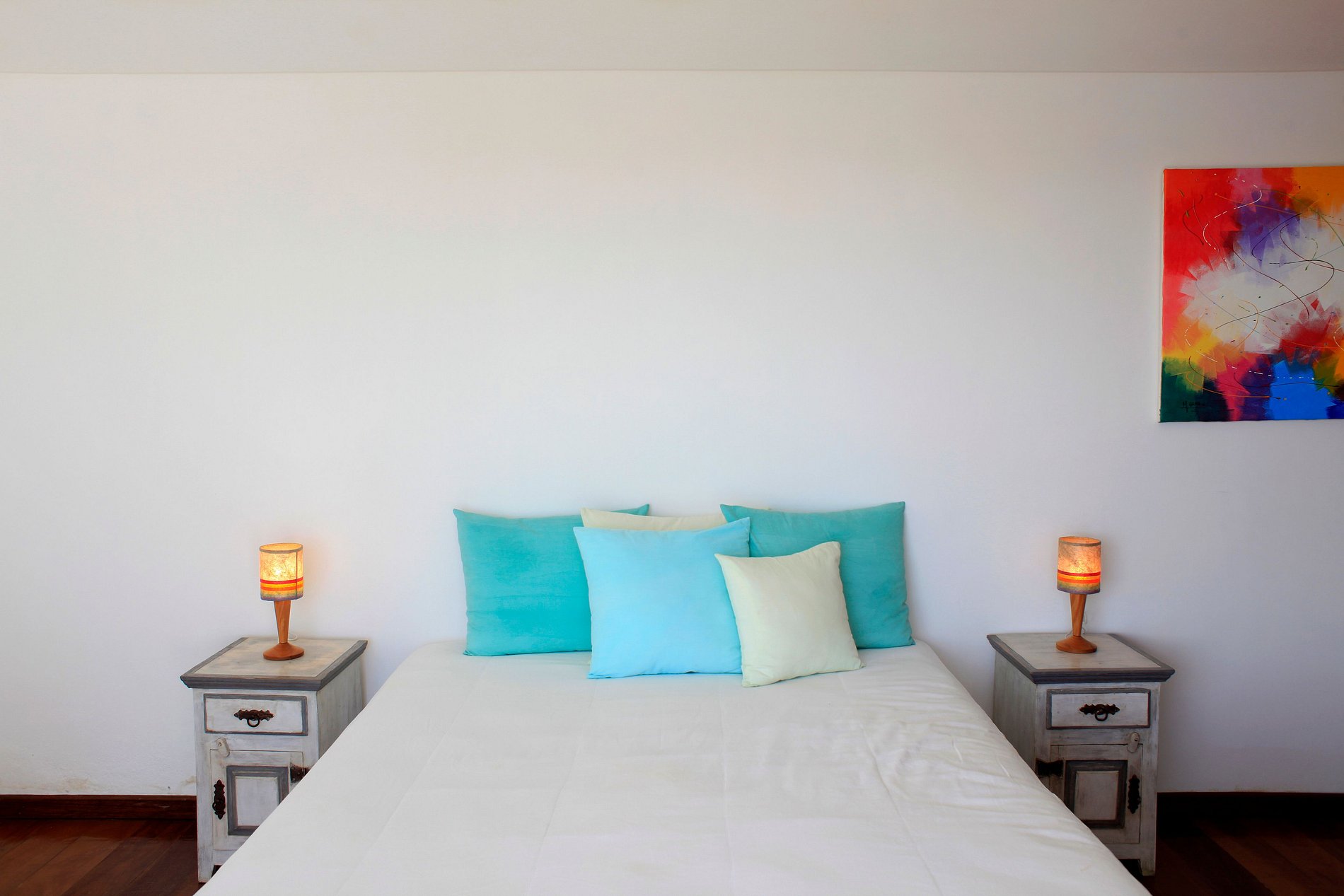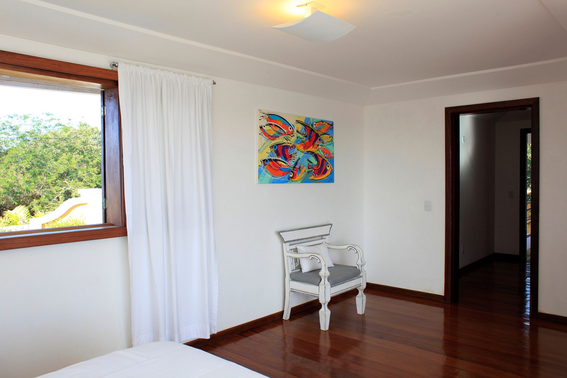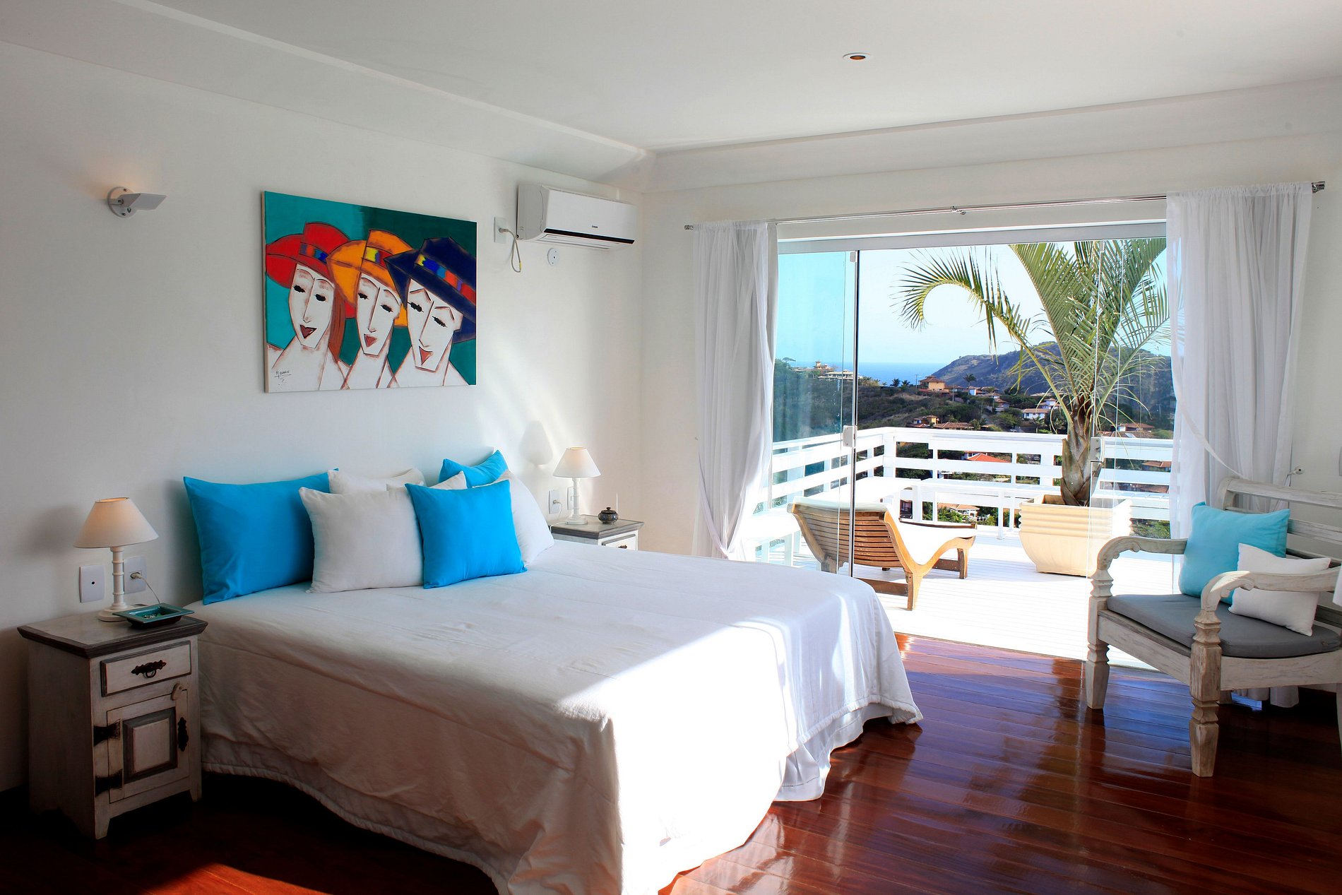 All four suites captures the sensational view below the horseshoe bay. The house stands out for the endless blue swimming pool, surrounded by a white wooden deck with a minimal yet rustic feeling.