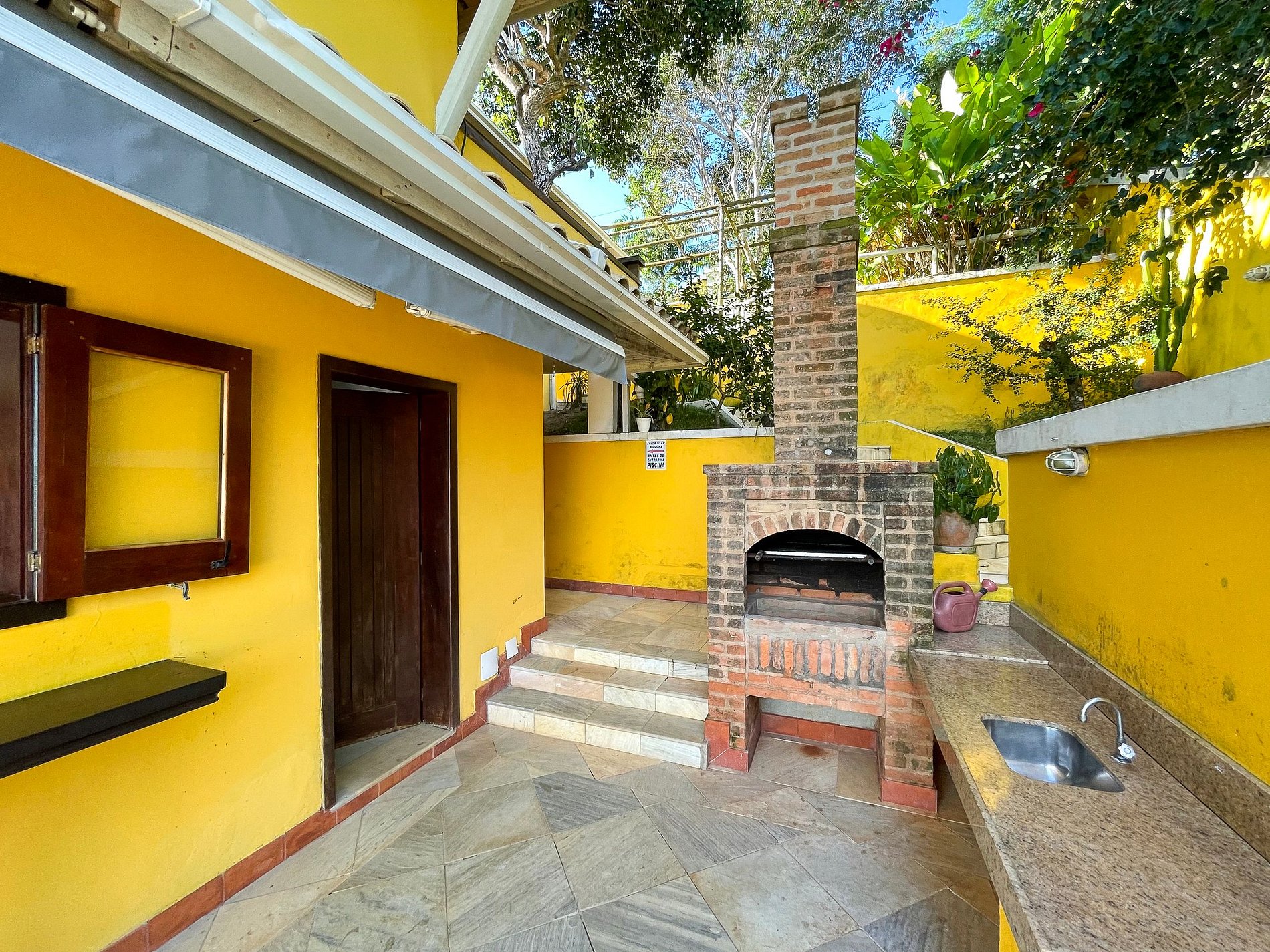 Simply stunning with a Mediterranean style the outdoor decking is a fantastic spot to enjoy a beautiful sunset or to wine down your evening. The house comes fully equipped with a traditional Brazilian BBQ area and with a veranda which is large enough to shelter most rain storms.