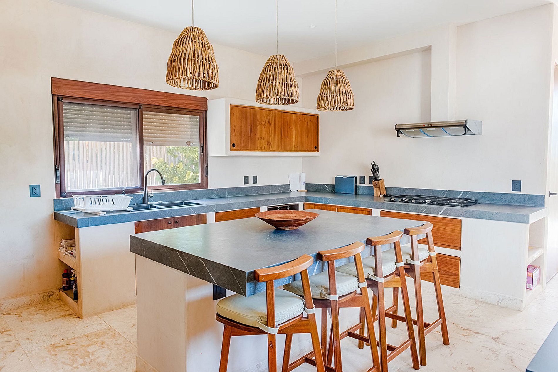 Your every need and desire are attended to with unwavering dedication. A devoted concierge, fluent in English and Spanish, stands ready to orchestrate your experience with flawless precision. Immerse yourself in uninterrupted relaxation as the dedicated housekeeping team tends to every detail from 7 am to 5 pm. The verdant beauty surrounding the retreat is meticulously maintained by a skilled gardener, offering you a pristine oasis throughout your stay.