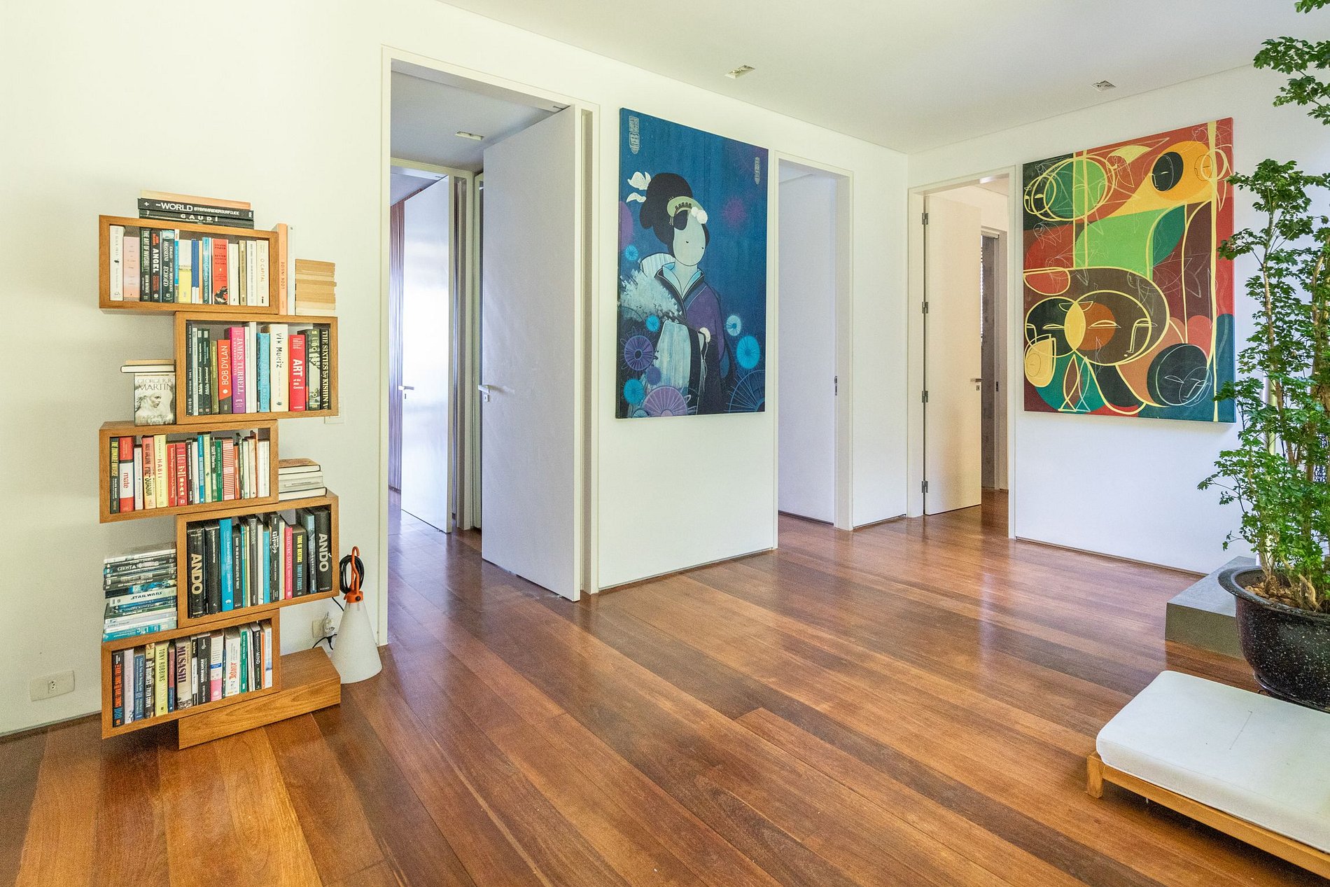This house effortlessly marries contemporary design with classic tropical Brazilian elements, resulting in a truly captivating aesthetic. Throughout the space, you'll find exquisite hardwood floors, modern furnishings, and all the amenities one could desire. The combination of whitewashed walls and natural Brazilian stone not only imparts a stunning visual but also keeps the interior comfortably cool. These harmoniously blend with the surrounding natural beauty of the jungle, which is further brought indoors through the floor-to-ceiling windows.