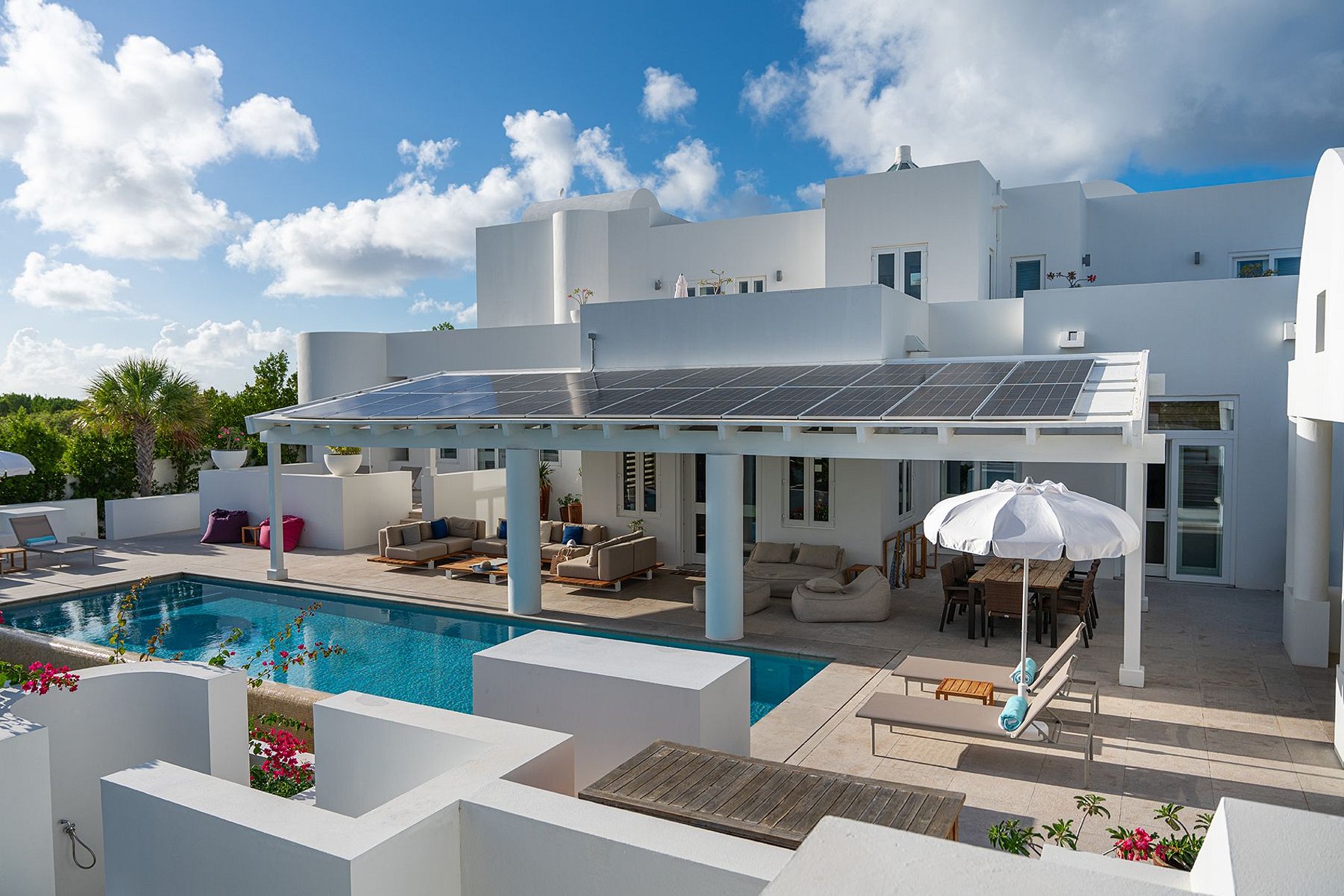Located within the prestigious Aurora Anguilla Resort & Golf Club, this elegant contemporary villa offers a refined private escape in the island’s exclusive West End. With a pool, jacuzzi, rooftop patio, and thoughtful interiors, this serene four-bedroom home blends luxury with panoramic views of the sea and golf course.