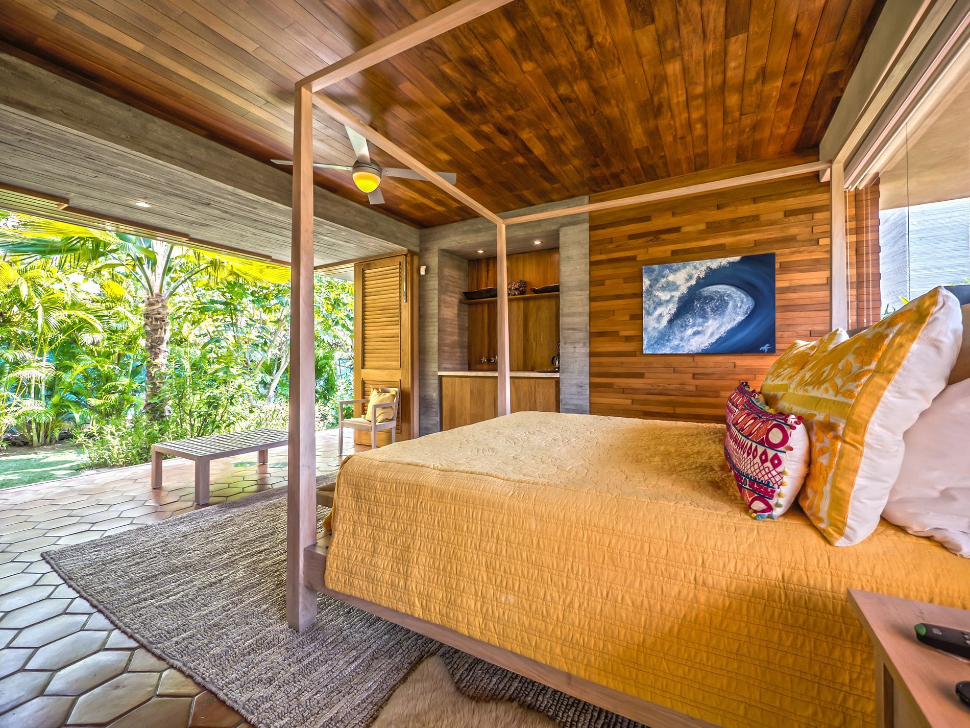 Master Bedroom 1: king size bed, bathroom with shower & bathtub, walk-in closet, lounge area, television, air conditioning, ceiling fan, private terrace, safe, office, access to private pool
