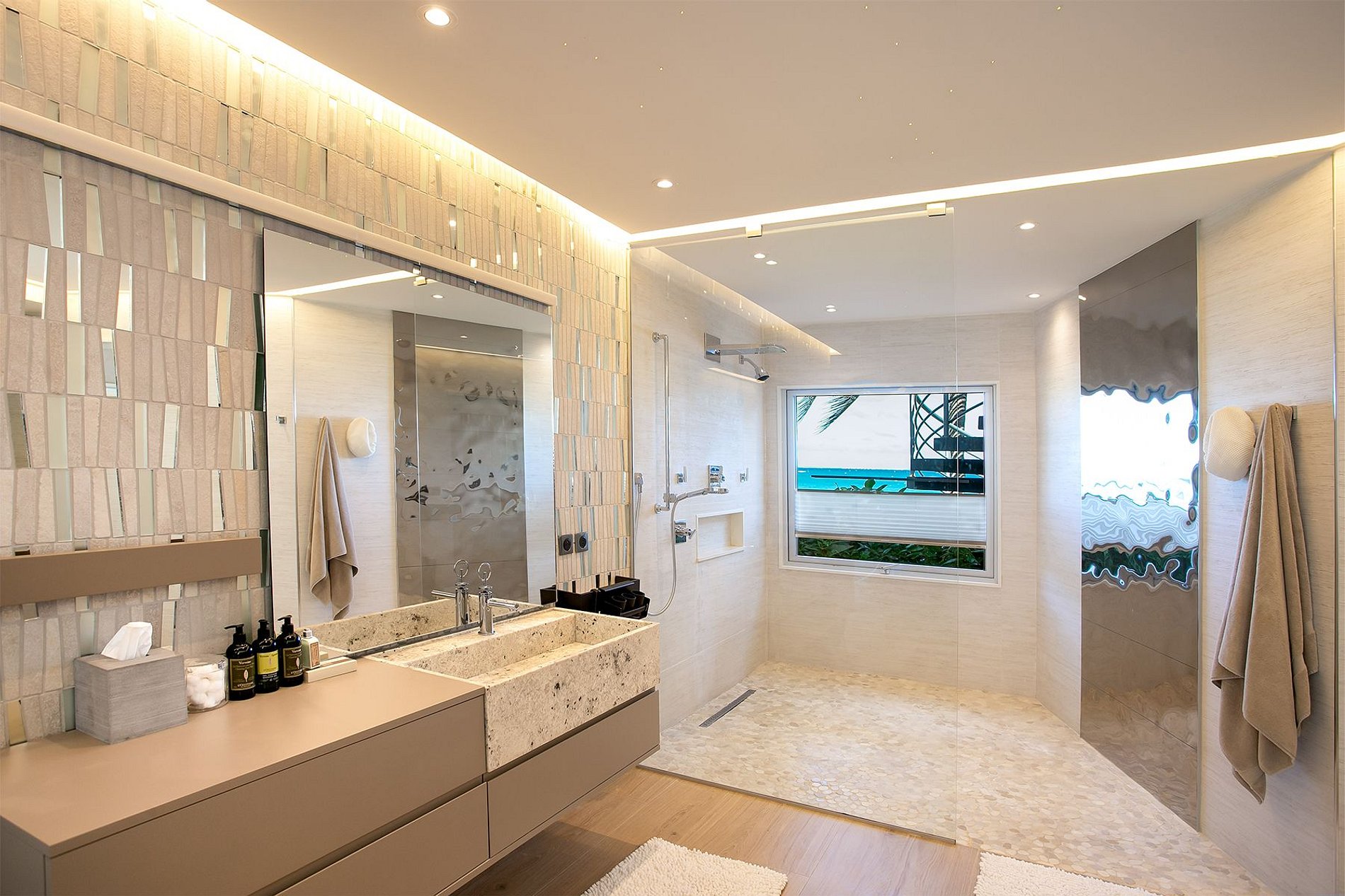 The villa’s interiors combine sophistication and comfort with sweeping ocean views from nearly every room. The open-plan living and dining areas flow into a gourmet kitchen equipped for any culinary need. Guests can relax in the plush movie room, enjoy a game of billiards, or take in the sound of the waves from shaded cabanas and a spacious oceanfront terrace.