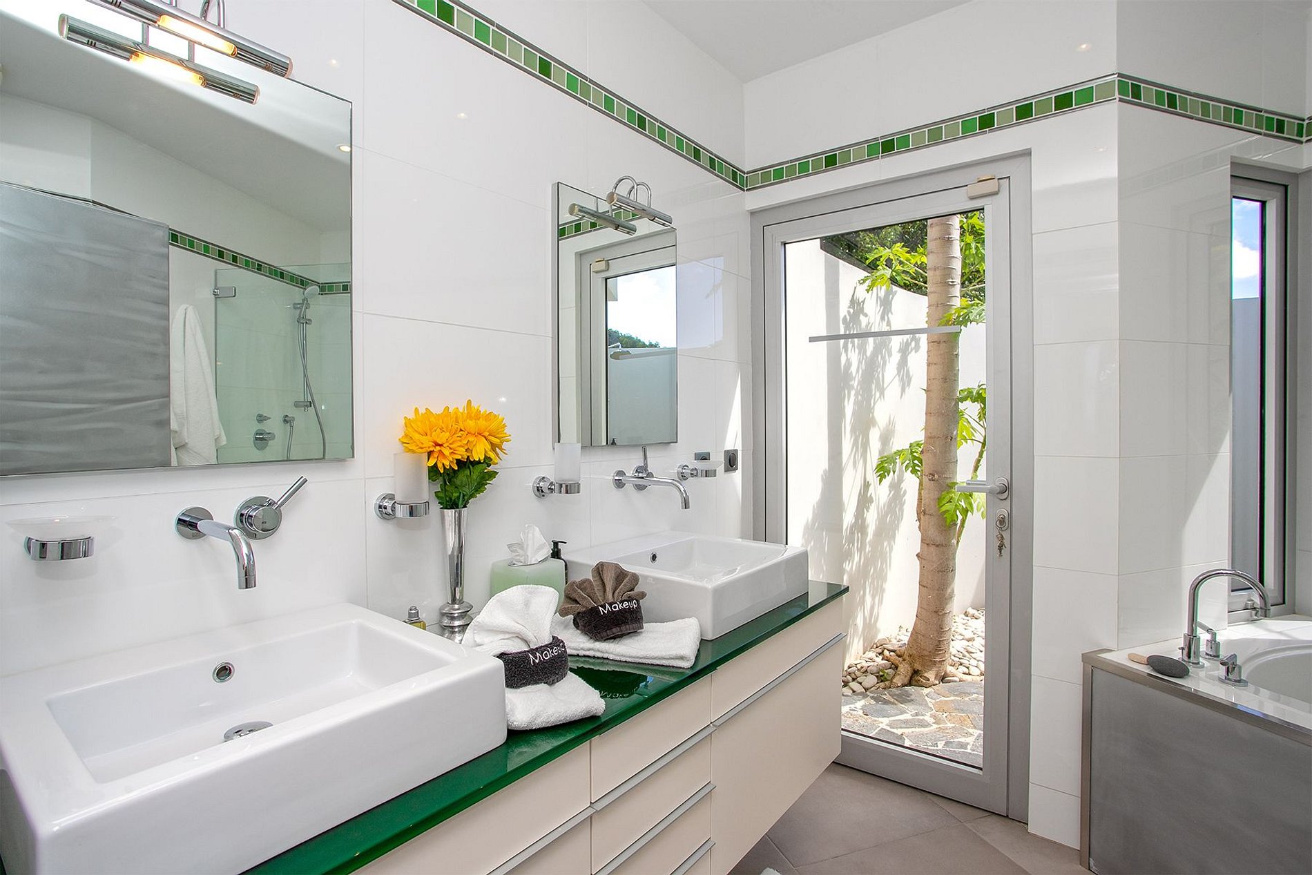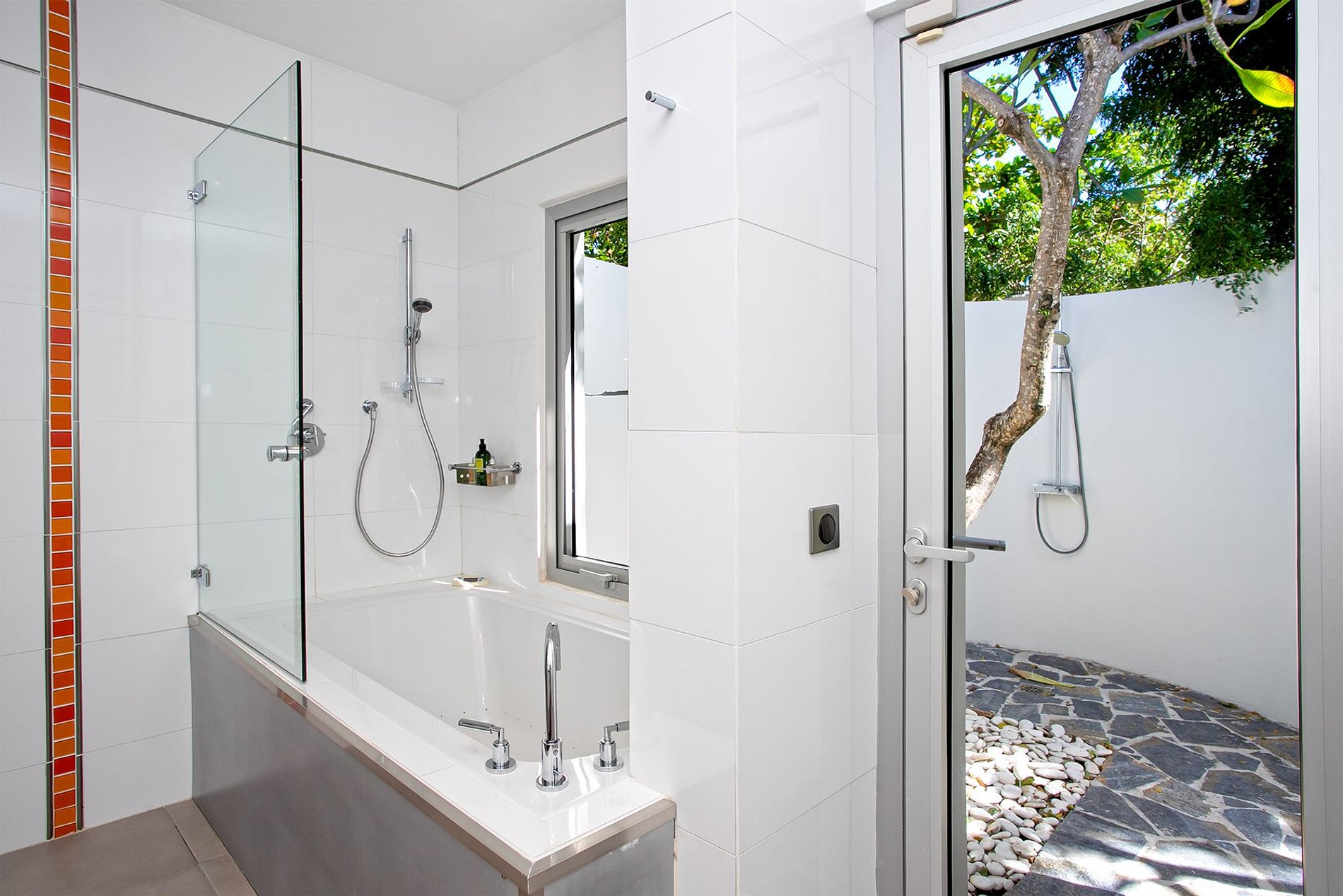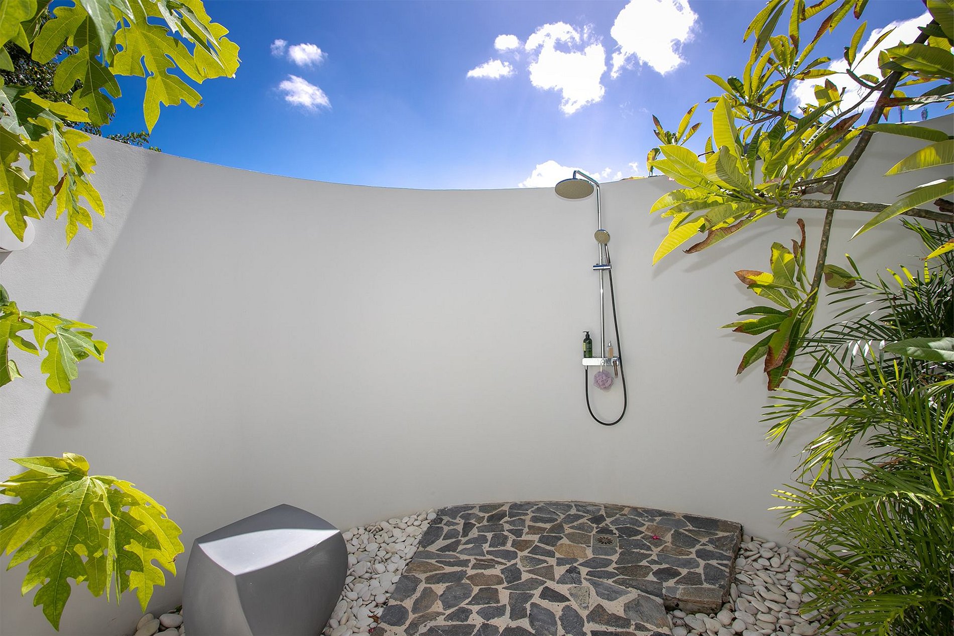 Each of the six bedrooms is a private sanctuary, all with king-size beds (two convertible into twins), en-suite bathrooms, and outdoor garden showers. Several bedrooms open directly onto private gardens or the sea-facing terrace, allowing for total immersion in the natural surroundings.