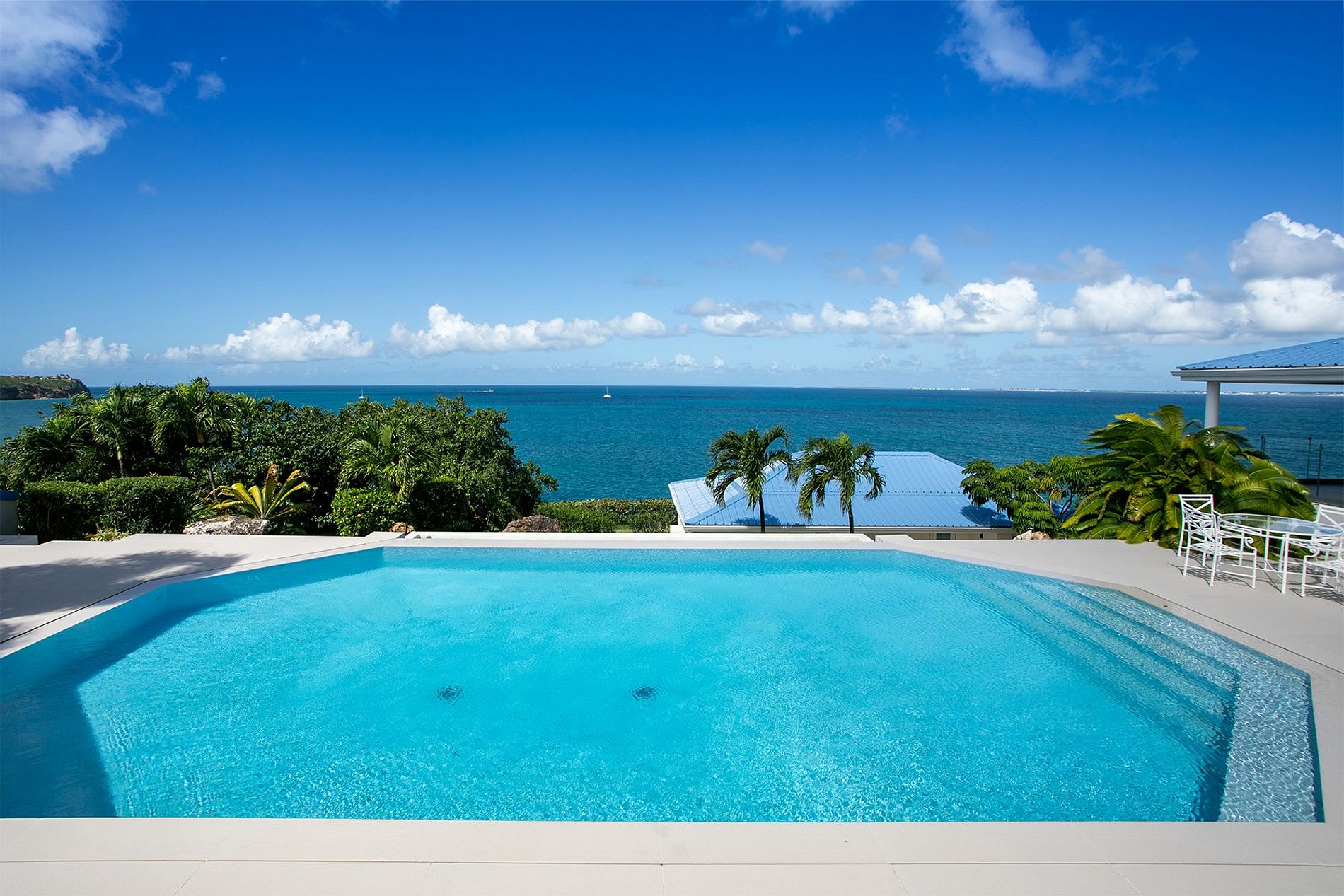 Overlooking Baie Rouge Beach from an elevated position, this five-bedroom villa offers sweeping views of the Caribbean Sea and a calm, elegant setting ideal for groups or families. Surrounded by terraces, gardens, and a stunning infinity pool, the home flows naturally between indoor and outdoor spaces, making the most of its privileged location.