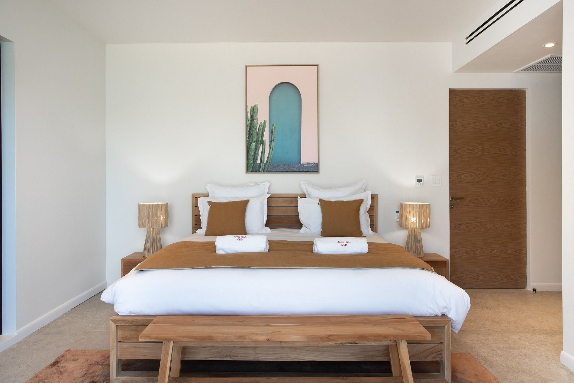 Each of the six bedrooms is designed for privacy and comfort, featuring king-size beds, en-suite bathrooms, and direct access to the terrace or balconies. The master suite offers sweeping ocean views and a luxurious bathroom with walk-in shower. The layout is ideal for large groups, family reunions, or friends traveling together.