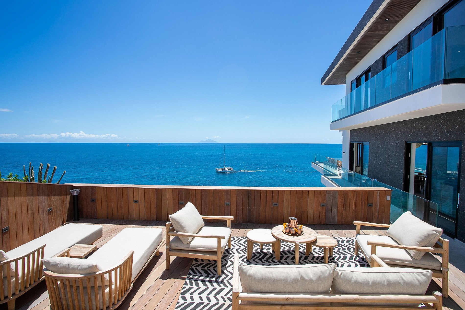 This brand-new six-bedroom villa in Indigo Bay offers a striking combination of contemporary architecture and refined Caribbean luxury, with panoramic sea views stretching toward the island of Saba. The open-concept design and floor-to-ceiling windows create a luminous and expansive environment that seamlessly connects indoor and outdoor living.