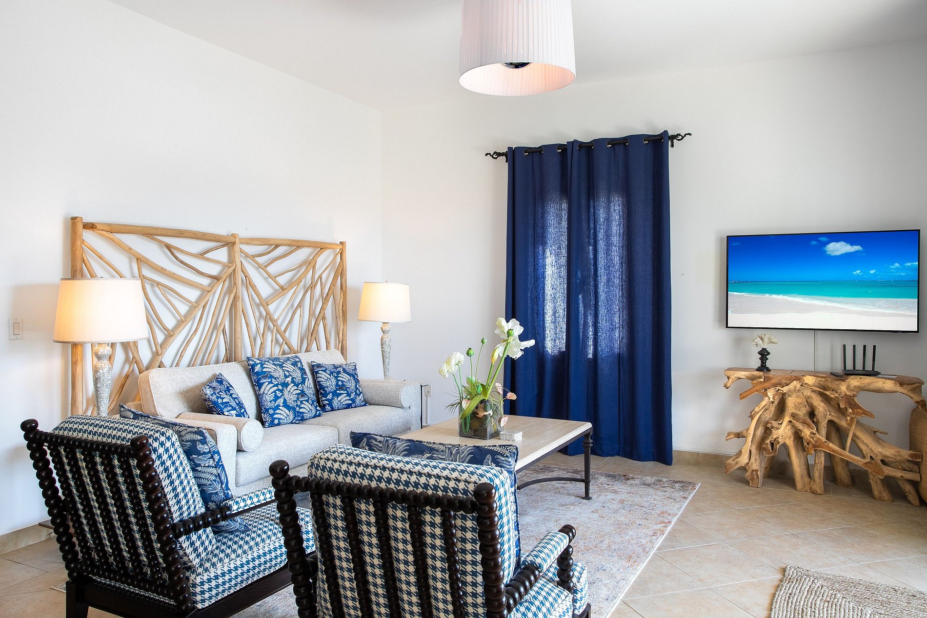 Step out to the large balcony where you’ll find outdoor seating and a dining space overlooking the gardens, the marina, and the blue waters of the lagoon. It’s the perfect setting to enjoy a quiet breakfast or a sunset cocktail.