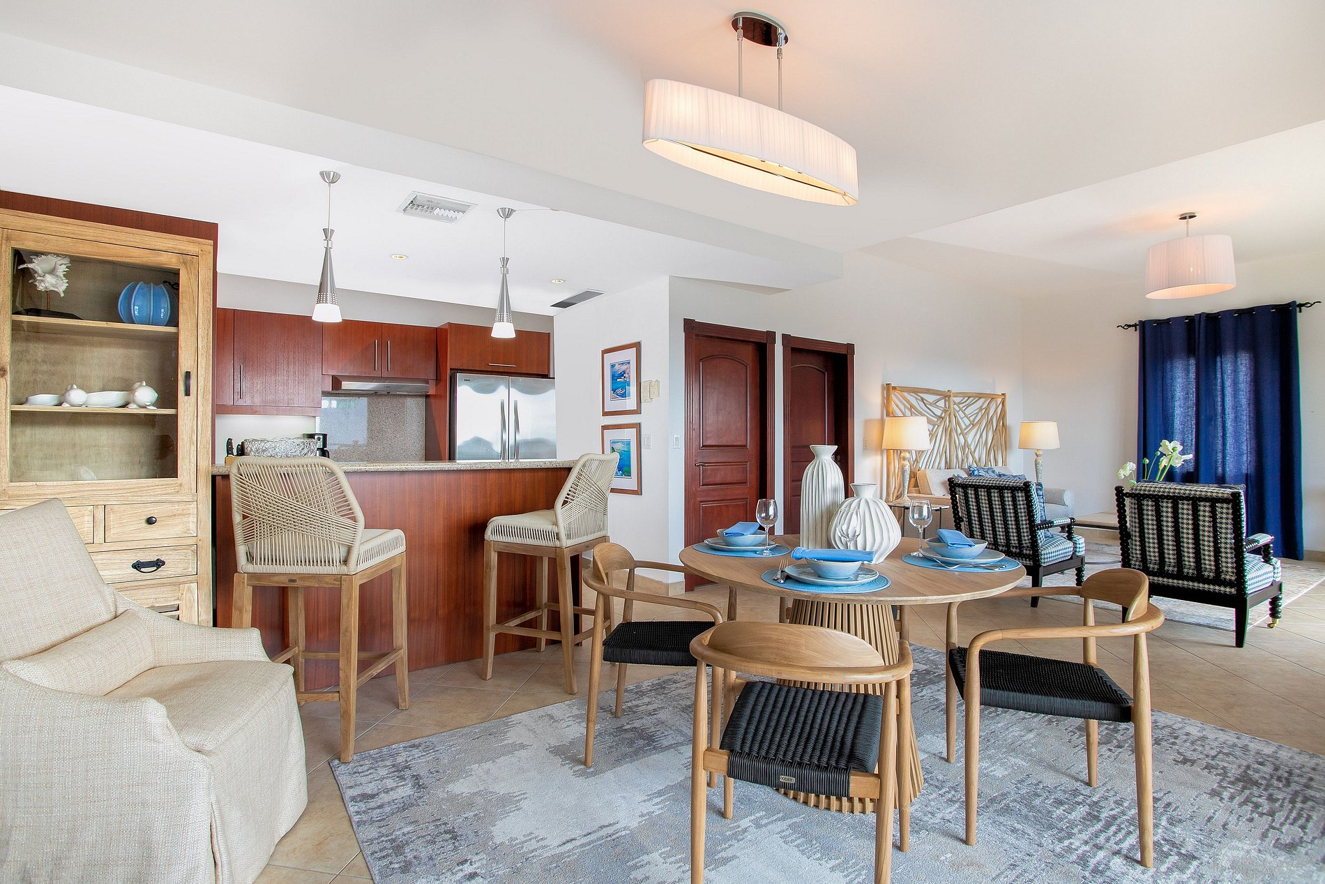 Step out to the large balcony where you’ll find outdoor seating and a dining space overlooking the gardens, the marina, and the blue waters of the lagoon. It’s the perfect setting to enjoy a quiet breakfast or a sunset cocktail.