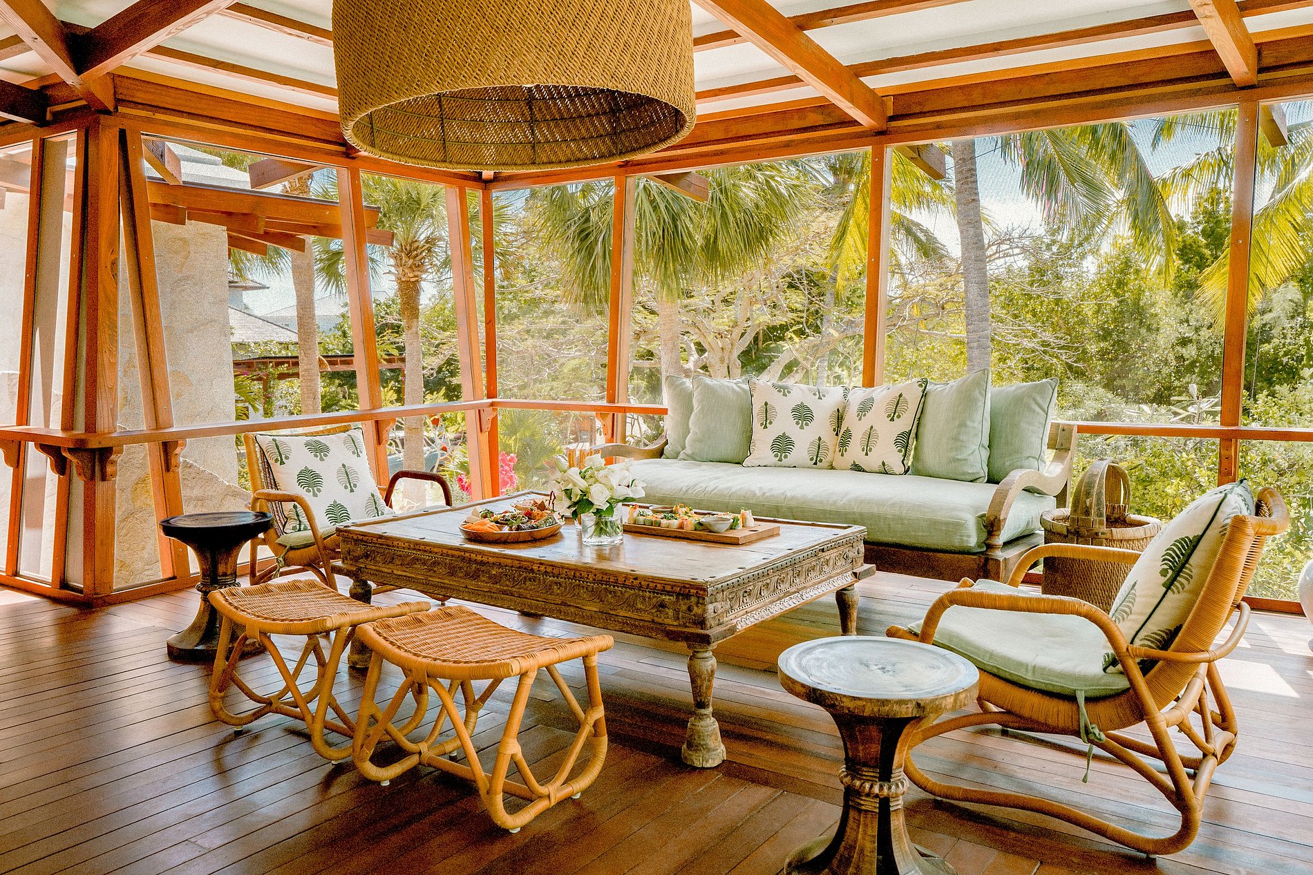 The main house includes four ocean-view king bedrooms, while the guest house features a queen bed and two bunk beds—ideal for families. Designed with wraparound verandas, canopy-level breezes, and indoor-outdoor living spaces, the villa blends comfort and style. Enjoy alfresco dining, a heated pool, rooftop deck, and direct beach access. A full staff including butler and housekeeping ensures a relaxed, unforgettable stay.