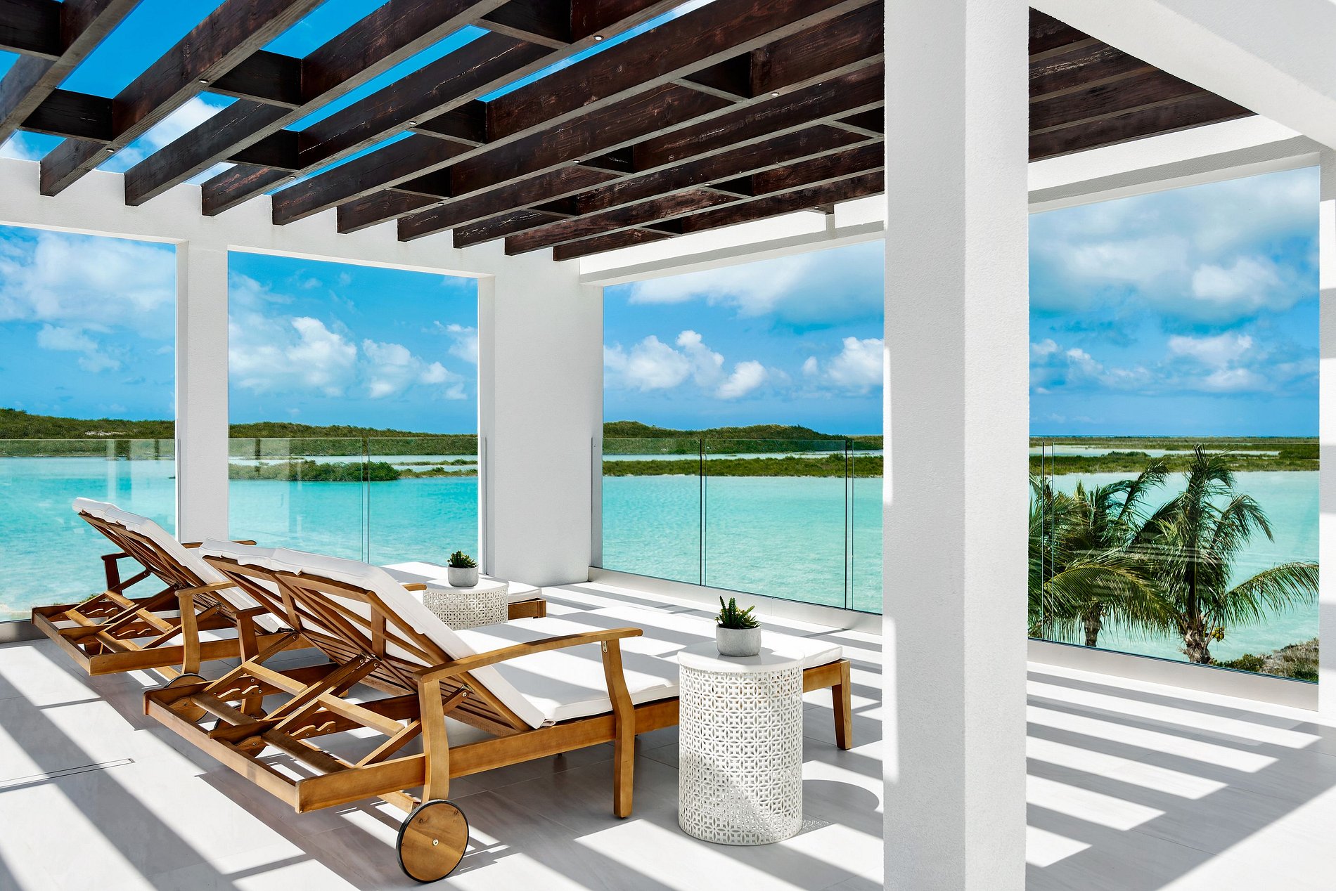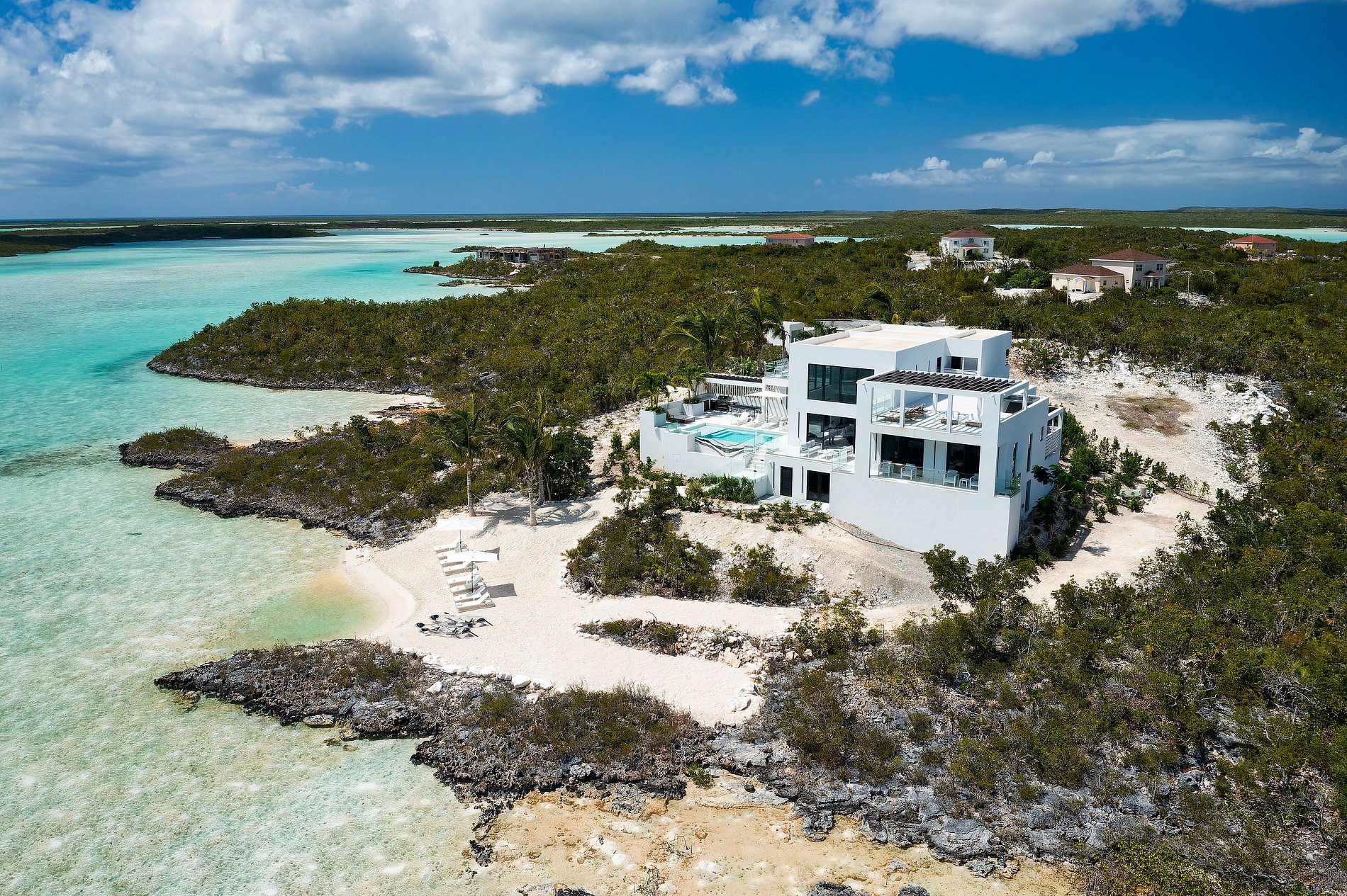 Highlights include a rooftop hot tub and yoga deck, a heated infinity pool, outdoor showers on every level, and a gym that doubles as a fifth bedroom with steam room. A rooftop cinema, open-air living and dining areas, and smart lighting and sound systems throughout complete this exceptional experience. Perfect for guests seeking a refined, design-forward escape in one of Turks and Caicos’ most serene settings.