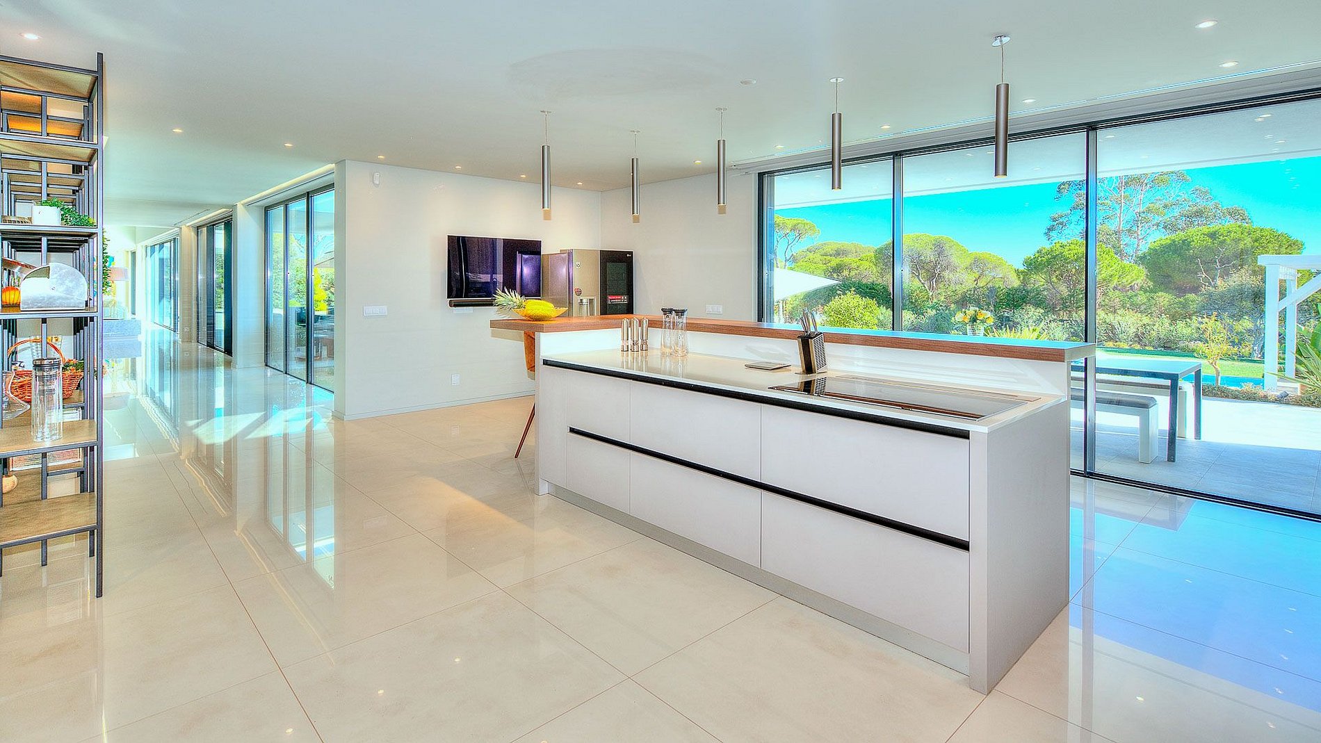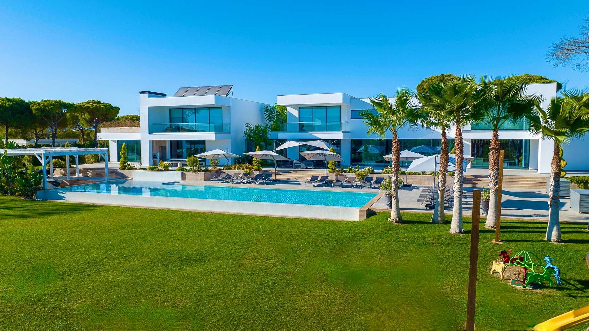 This luxurious three-level villa in Vilamoura, one of the Algarve's most desirable neighborhoods, boasts minimalist contemporary architecture and state-of-the-art amenities. With ample indoor and outdoor space for entertainment and activities, this glamorous Algarve rental is perfect for large families and groups of friends seeking high-style gatherings or private relaxation.