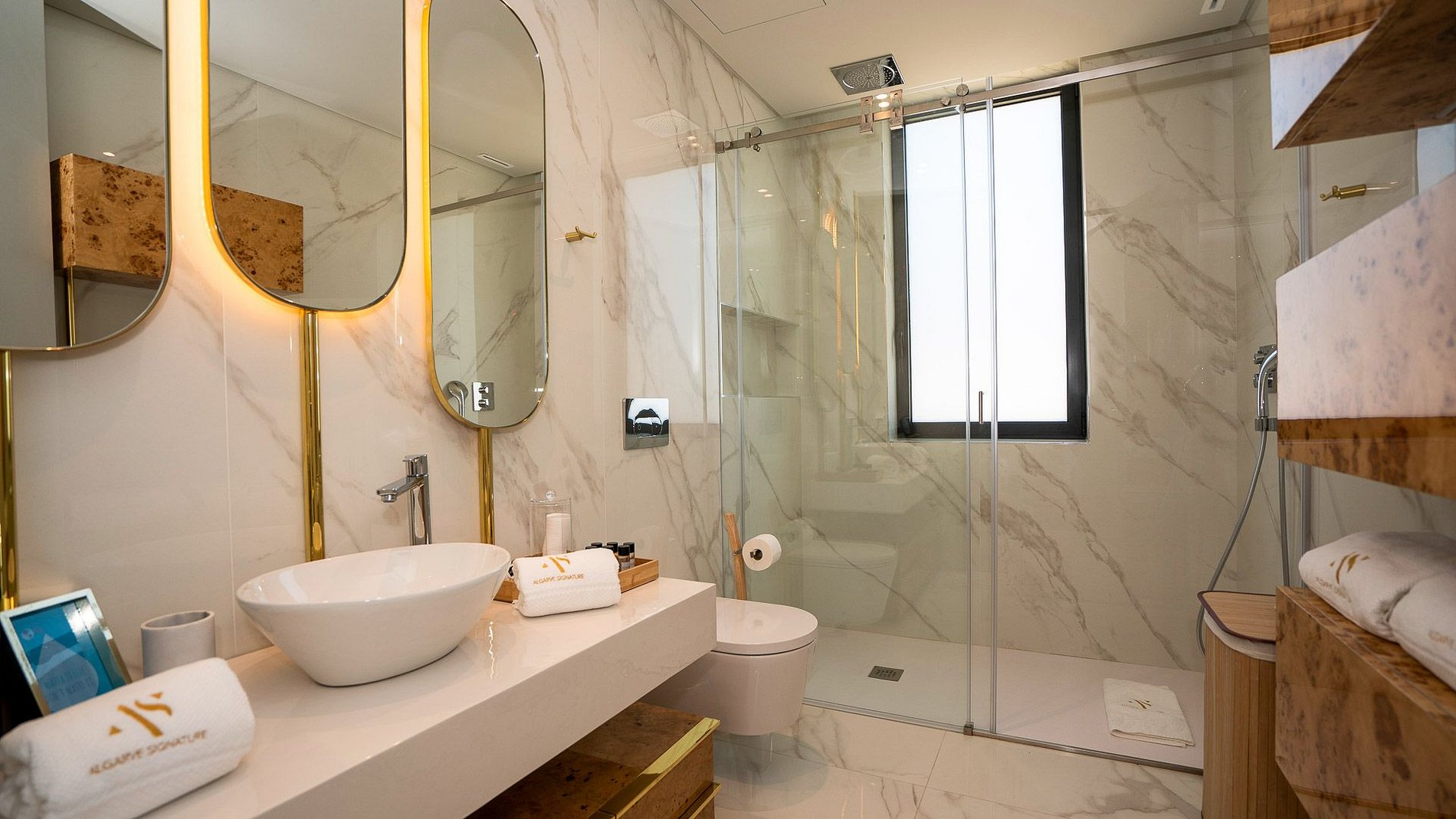 This luxurious three-level villa in Vilamoura, one of the Algarve's most desirable neighborhoods, boasts minimalist contemporary architecture and state-of-the-art amenities. With ample indoor and outdoor space for entertainment and activities, this glamorous Algarve rental is perfect for large families and groups of friends seeking high-style gatherings or private relaxation.