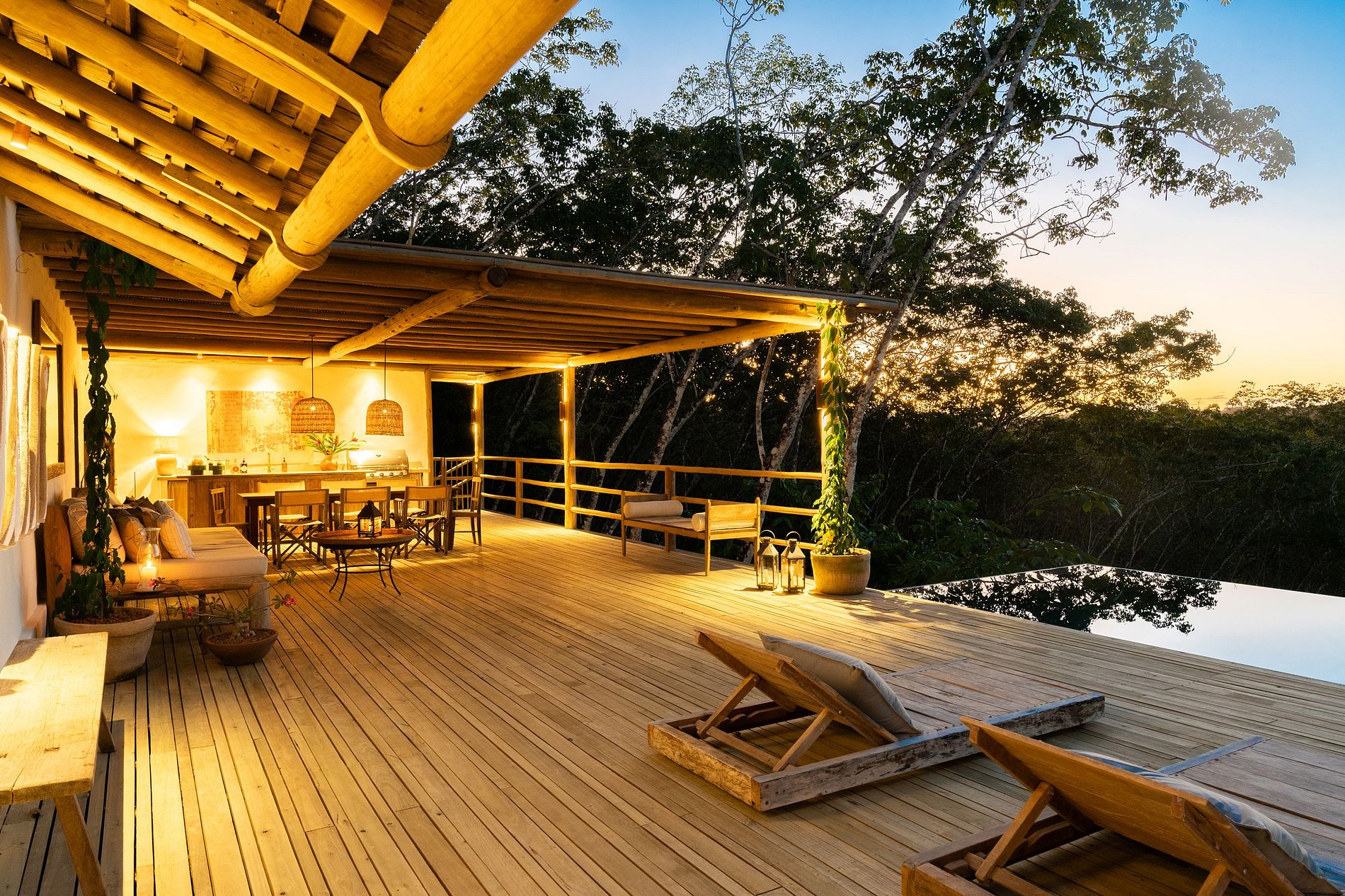 The subtle and elegant details of the decoration allow the natural beauty to be the star of the environment. The architecture uses demolition wood and local materials combined in an artisanal way, and provide a charming fusion between rusticity, elegance and beach charm.