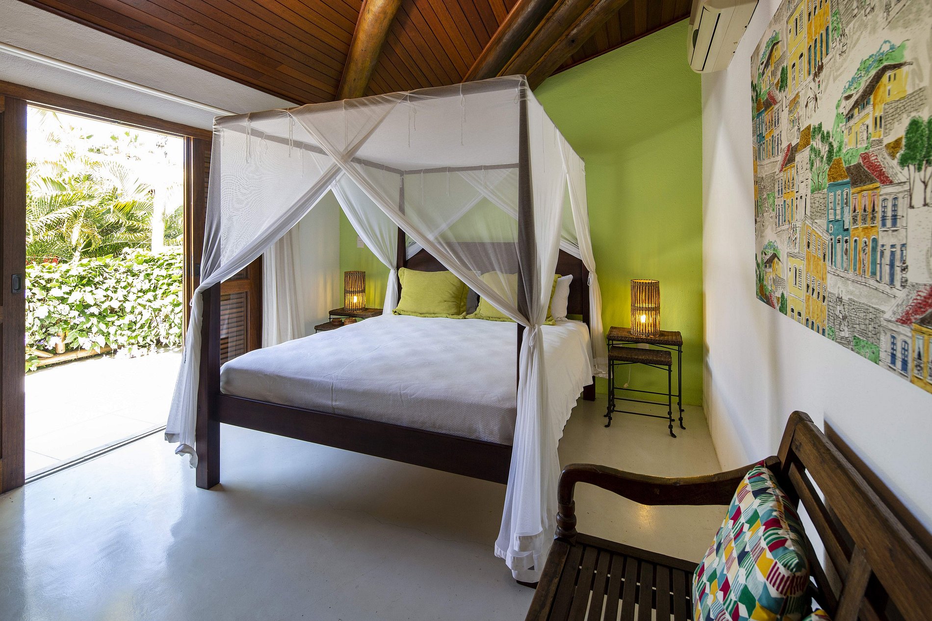 Suite 4: Queen bed, air conditioning, double sink, balcony overlooking the garden.