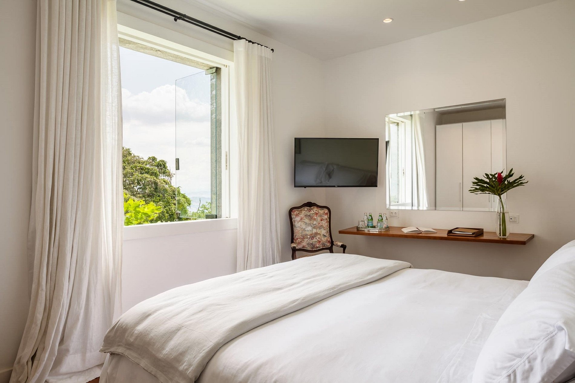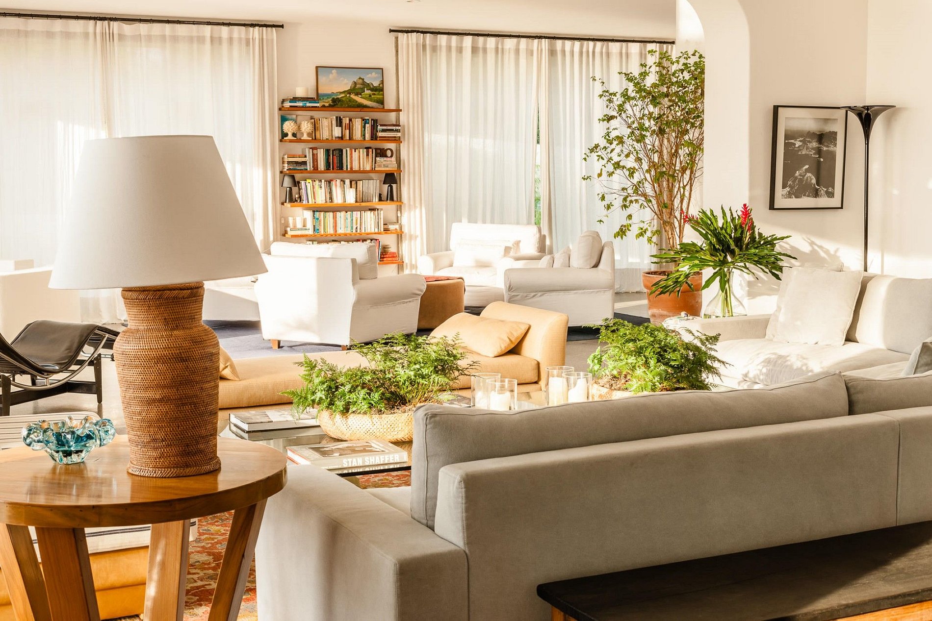 Now available for the first time for private rent, this 7 bedroom villa is located on the privately owned grounds of one of Rio's oldest and most remarkable families, nestled in the heart of Santa Teresa. A complete hideaway in the middle of the city, silent, saved by the sound of birds and breeze in the almond trees, the 1970s modernist white mansion is enveloped in the rainforest of the Atlantic Forest, while views below the Sugar Loaf River, Guanabara's Bay.