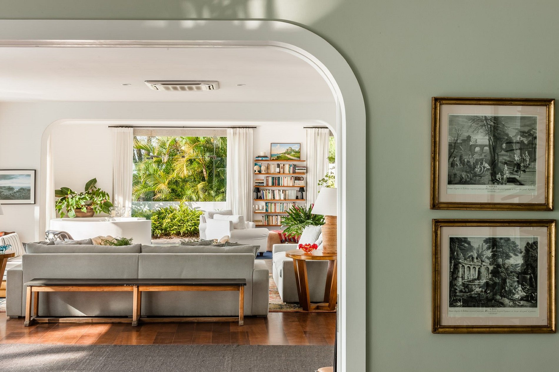 Now available for the first time for private rent, this 7 bedroom villa is located on the privately owned grounds of one of Rio's oldest and most remarkable families, nestled in the heart of Santa Teresa. A complete hideaway in the middle of the city, silent, saved by the sound of birds and breeze in the almond trees, the 1970s modernist white mansion is enveloped in the rainforest of the Atlantic Forest, while views below the Sugar Loaf River, Guanabara's Bay.