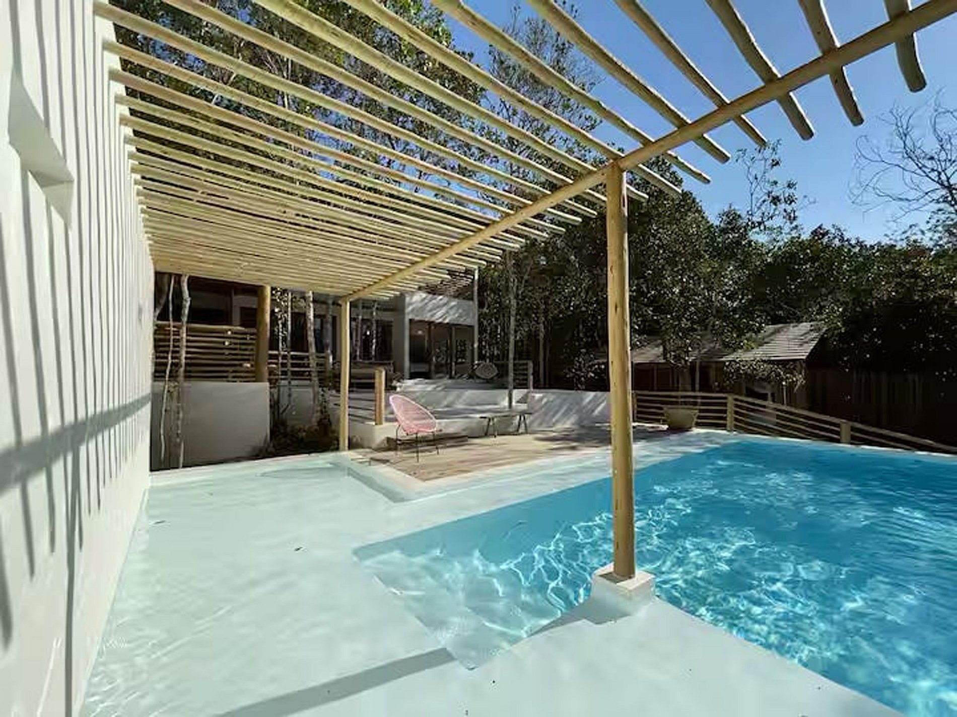 The pool is exclusive. There is a delightful little beach for a chat or play. To make things even better, you can lie in a hammock over the pool.