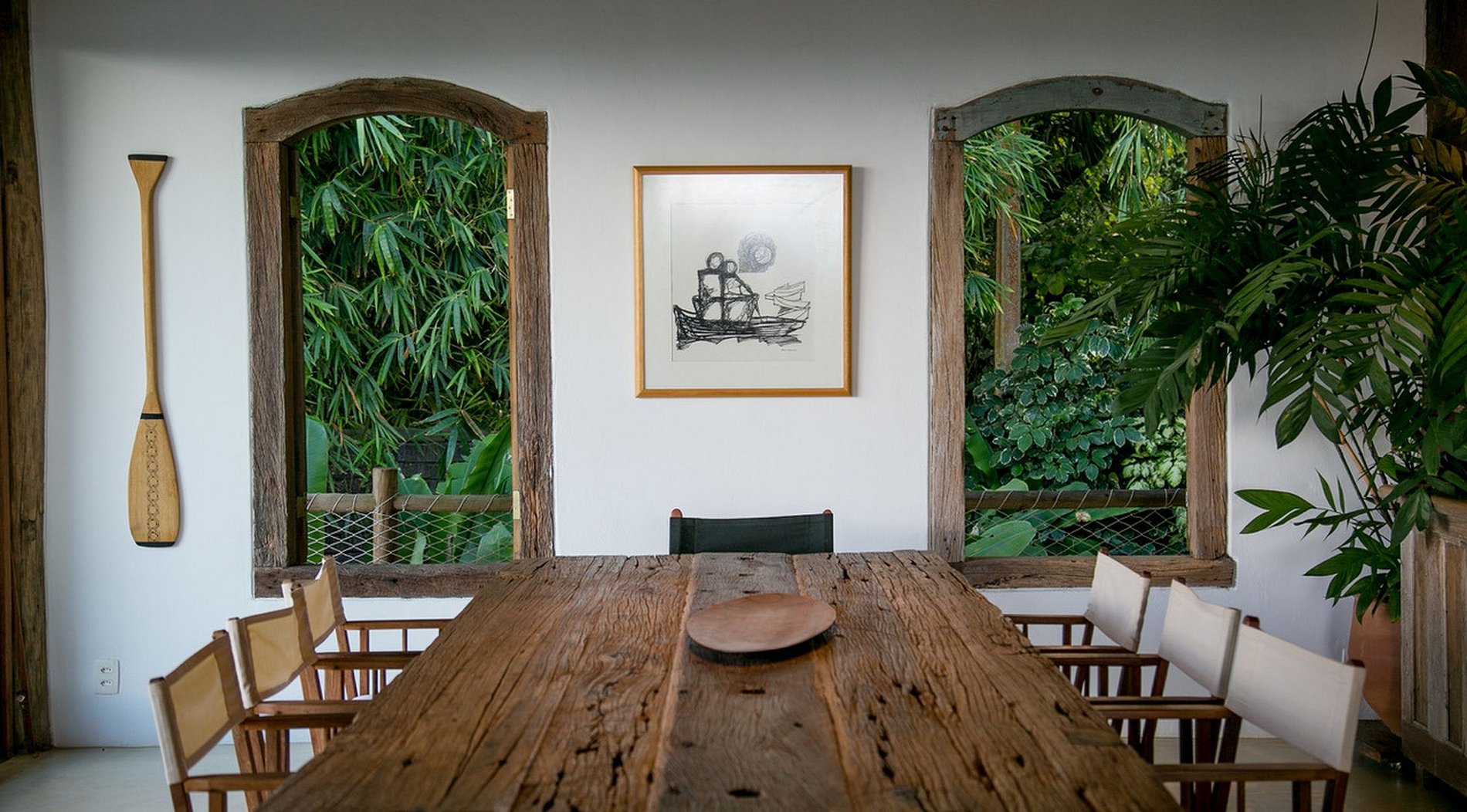 Hardwood used in the construction came from the reuse of an old water tank. Doors and windows from demolition were purchased in the interior of Bahia. The local elements are present in natural fiber, local furniture and precious wood.