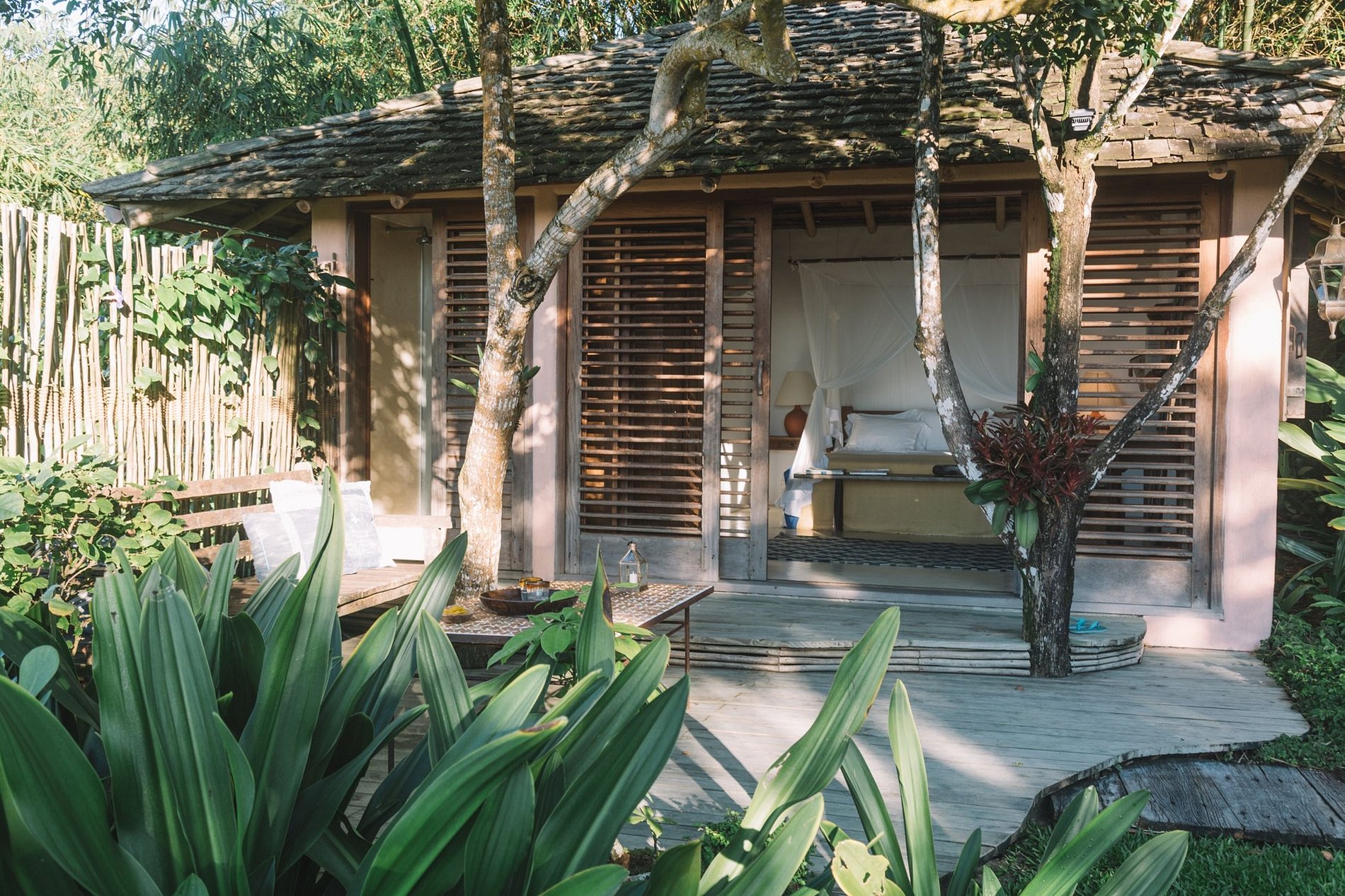 Hardwood used in the construction came from the reuse of an old water tank. Doors and windows from demolition were purchased in the interior of Bahia. The local elements are present in natural fiber, local furniture and precious wood.
