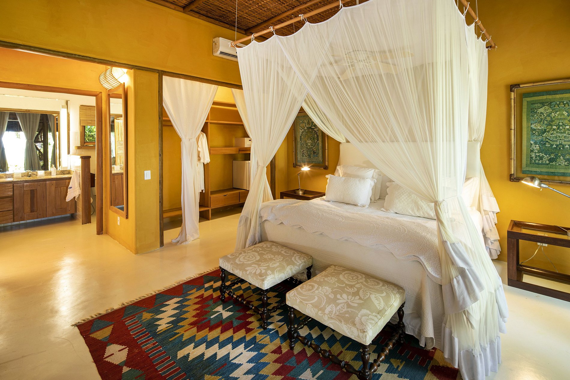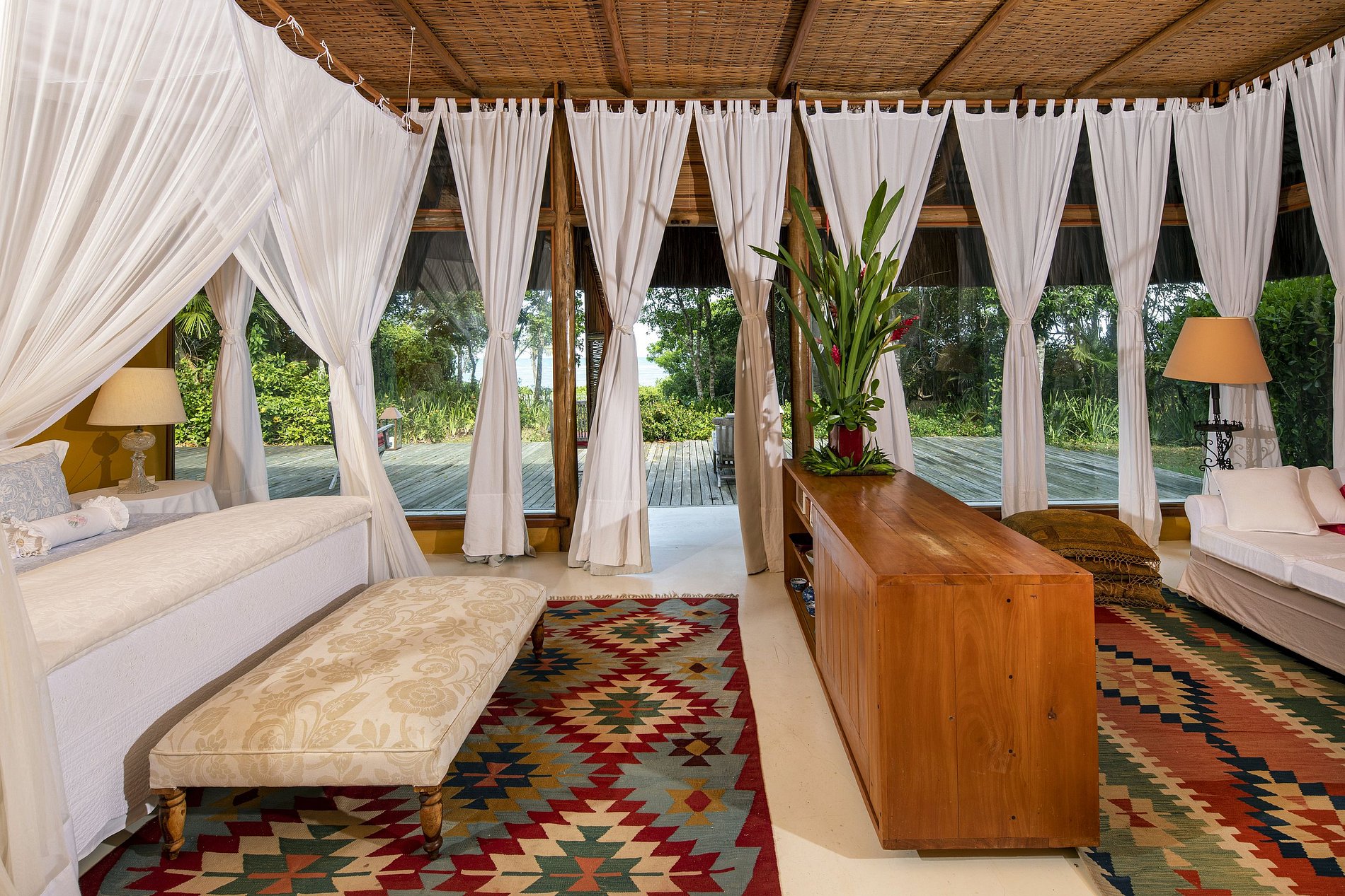 The lounge bar under the braided palm roof is the ideal place to enjoy freshly made caipirinha while having some great conversations with your guests. The well-trained staff, included in the rental price, will satisfy every wish you have. The property also possesses a huge 200m2 living room with comfortable furniture and modern equipment.