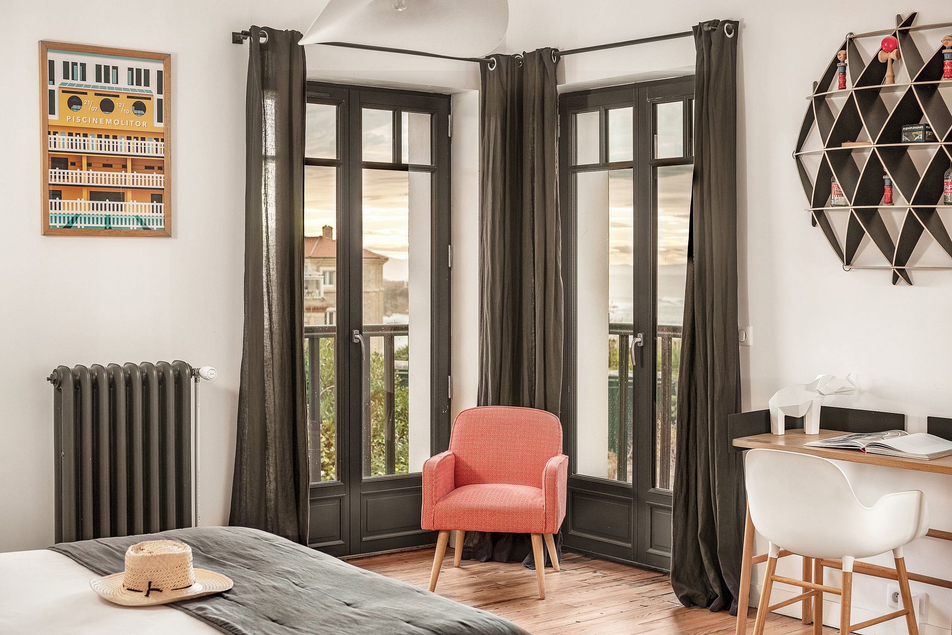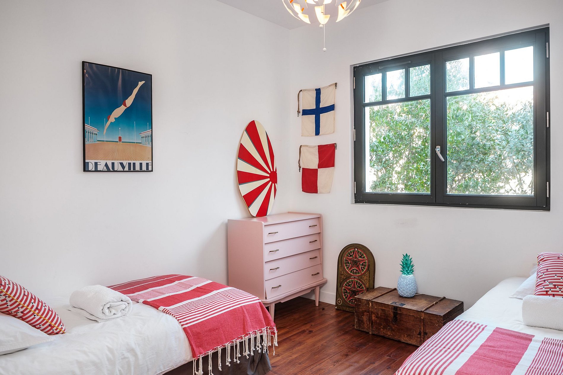 This Art Deco villa, featuring a large 12-meter swimming pool, can accommodate up to 14 people. It is located on the prestigious Avenue de l'Impératrice between the Hôtel du Palais and Le Regina. It takes less than 3 minutes to walk to Miramar Beach or Grande Plage. The villa has a large south-facing garden of over 800 m² and a large terrace to make the most of the sunshine while being sheltered from the wind. With its 6 themed bedrooms and private bathrooms, this house is ideal for a stay with family or friends. A workshop-style island kitchen extended by a dining room, which overlooks the swimming pool. A large, comfortable living room with a “book and music room” will offer you good times whatever the season. Unlimited Wi-Fi Internet access is provided.