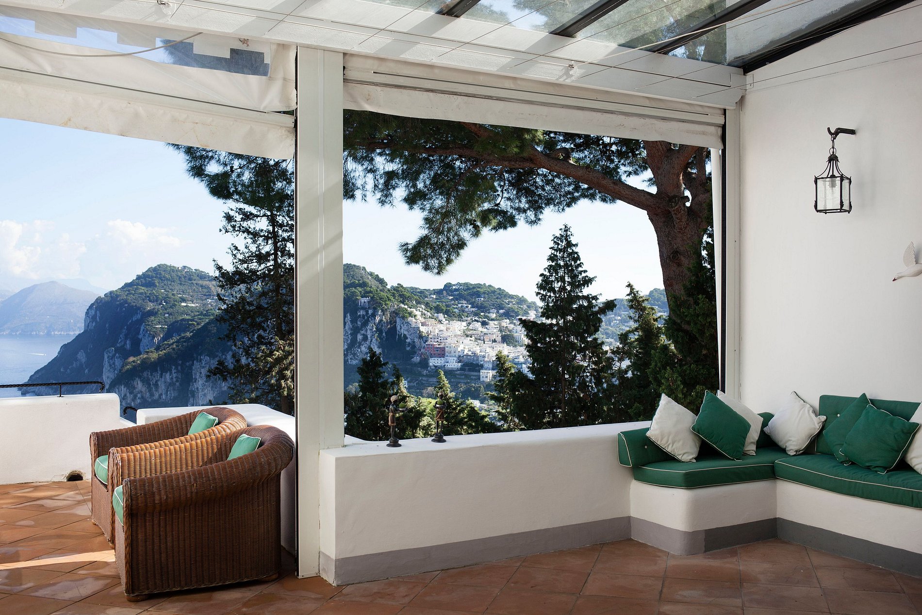 Situated in a hillside which gives the advantage of overlooking the Gulf of Sorrento, this property presents an unmatched panorama encompassing Vesuvius, the Bay of Naples, the Amalfi Coast, and Capri itself. While arriving by car is straightforward, there's also the option of a leisurely stroll to Capri's heart, the iconic "Piazzetta," and it's important to mention that the property features its own private funicular.