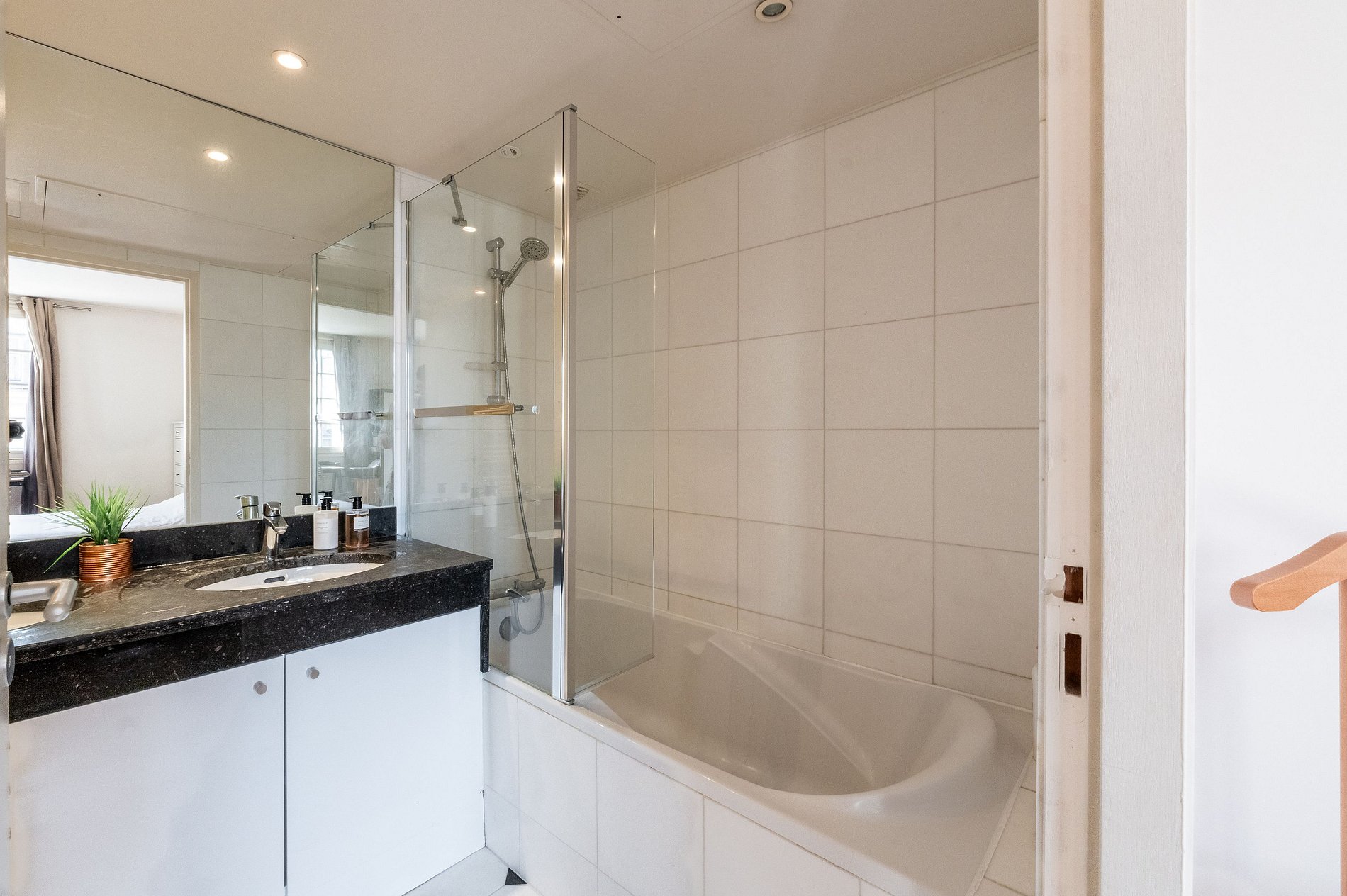 Set on the 5th floor of a former hotel, the apartment combines contemporary comfort with premium amenities in one of the capital’s most prestigious neighborhoods.